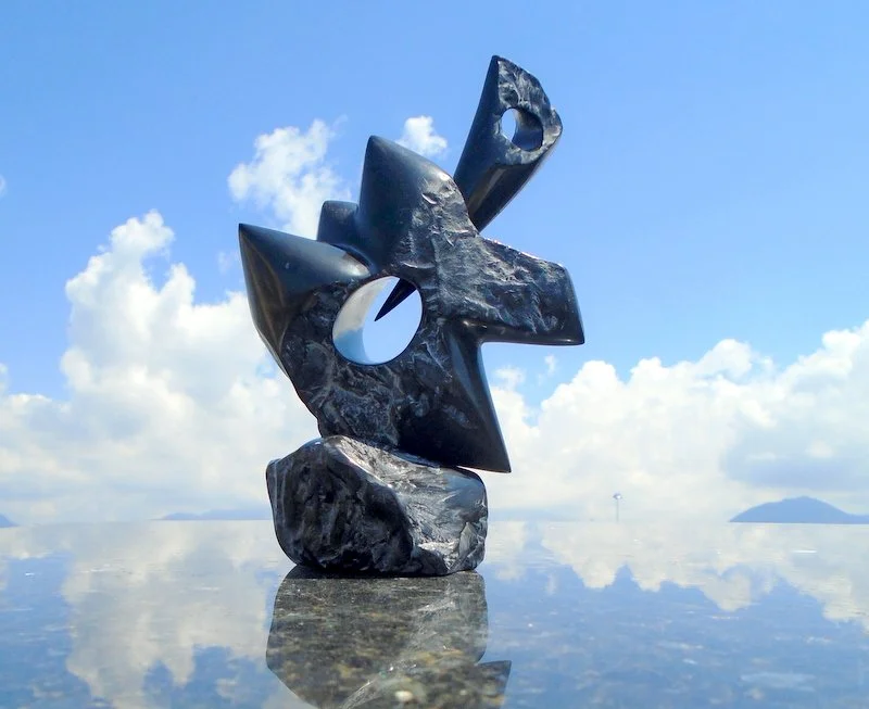 BODY OF STONE SPIRIT OF STEEL 2024 stainless steel, stone 40x16x14cm