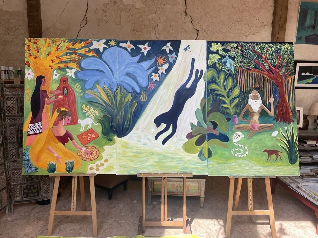 Figurative and narrative, Testard’s work is driven by colour, atmosphere and feeling. Whether depicting Indian classical musicians, jungles, Goan interiors, Himalayan landscapes or remote Icelandic horizons, he approaches painting as a way of inhabiting places rather than explaining them. Now based in France while continuing to travel extensively, he paints as a participant rather than an observer, honouring faraway worlds through memory, feeling and empathy.
