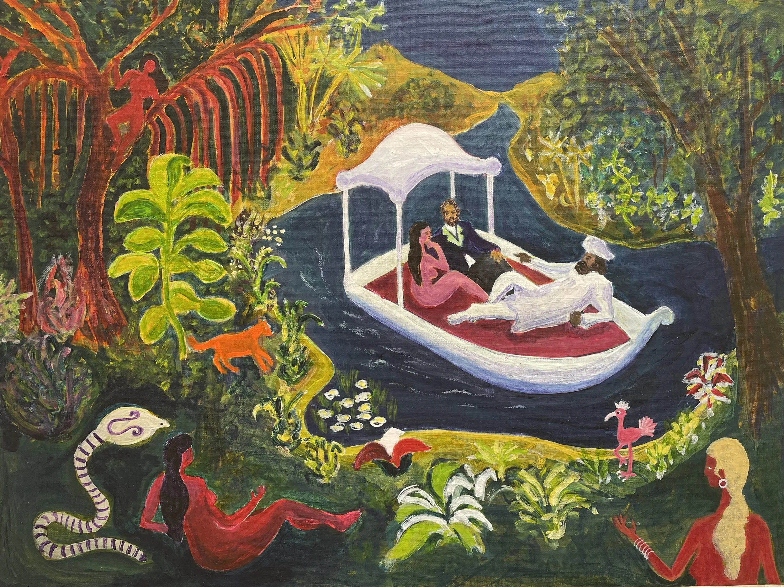 Picnic in the jungle (after Manet le déjeuner sur l'herbe), 2022, Acrylic on canvas, 45 x 60 cm