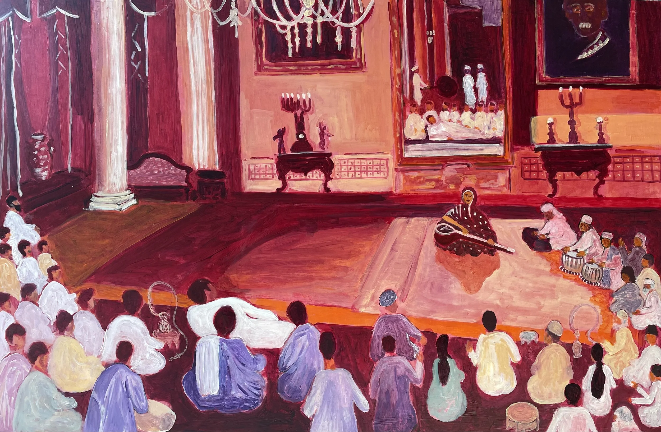 The Music room (after Satyajit Ray), 2022, Acrylic on canvas, 100 x 150 cm
