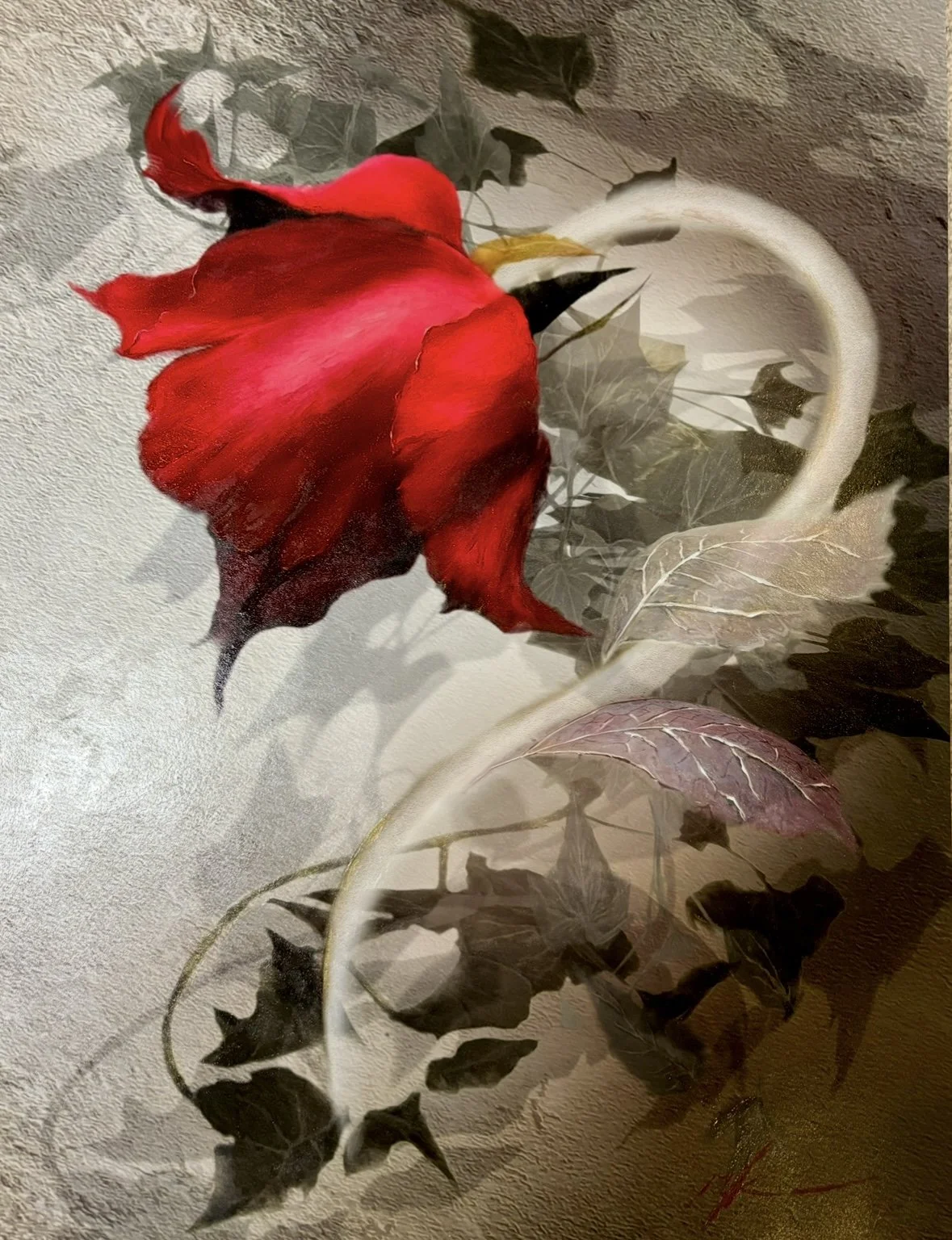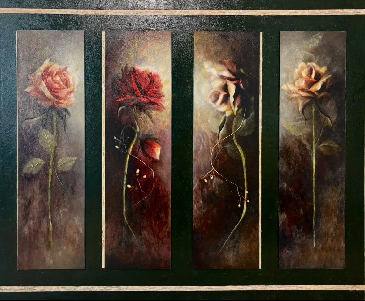 I conceive of roses and cranes as living entities endowed with mind and emotion. This perception arises from an inner, multidimensional worldview that is liberated from physical and temporal constraints, within which such beings reveal themselves in this form. What appears there is not the object itself, but the manifestation of mind and emotion; at times, the universal ideals of truth, goodness, and beauty—which each being may inherently possess—are reflected with clarity and dignity within the rose.