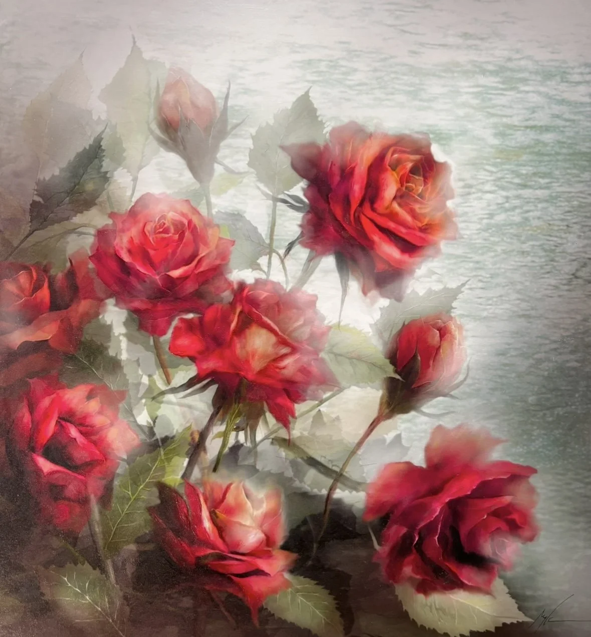 Red Roses, 2024, Mixed media, 41.3x53.1cm