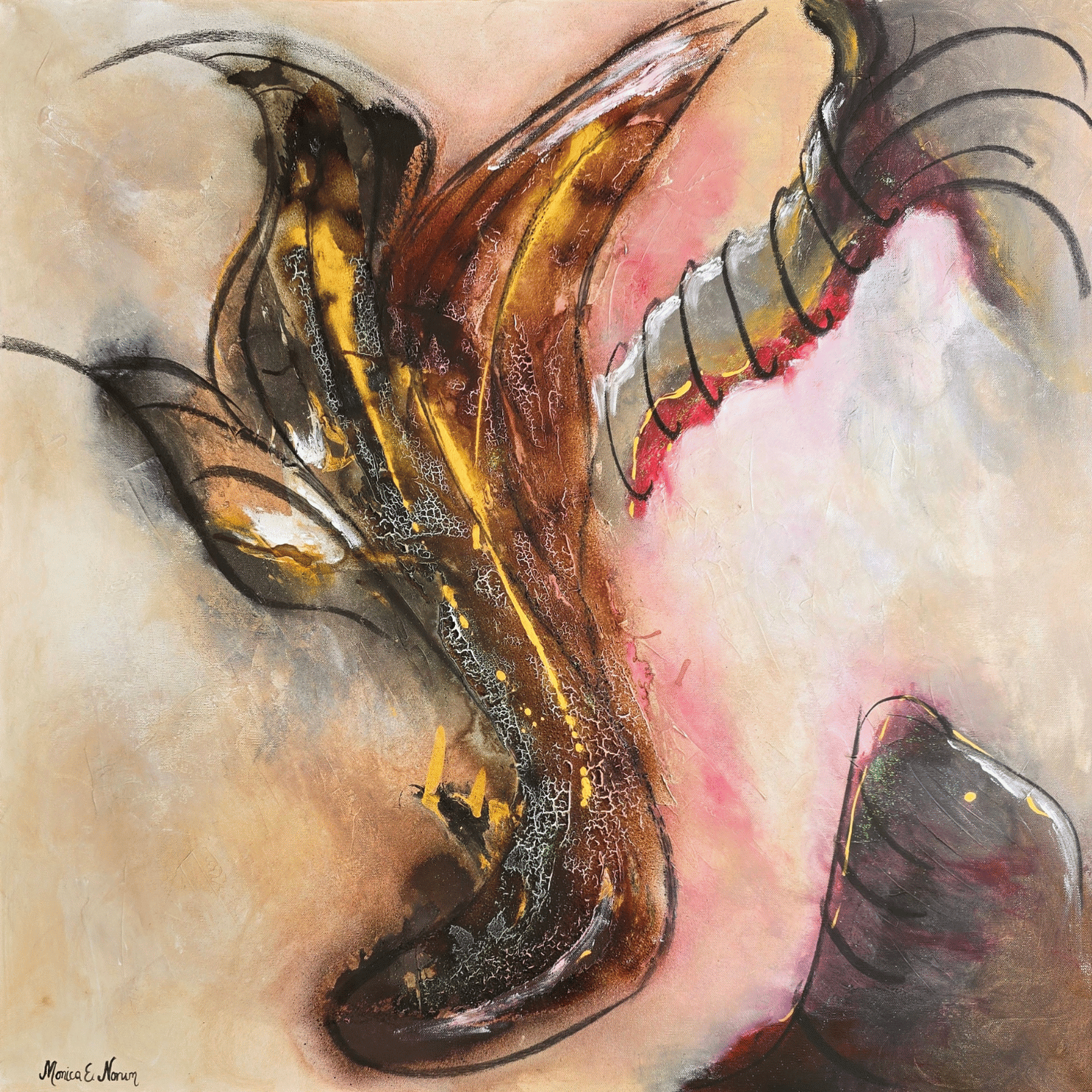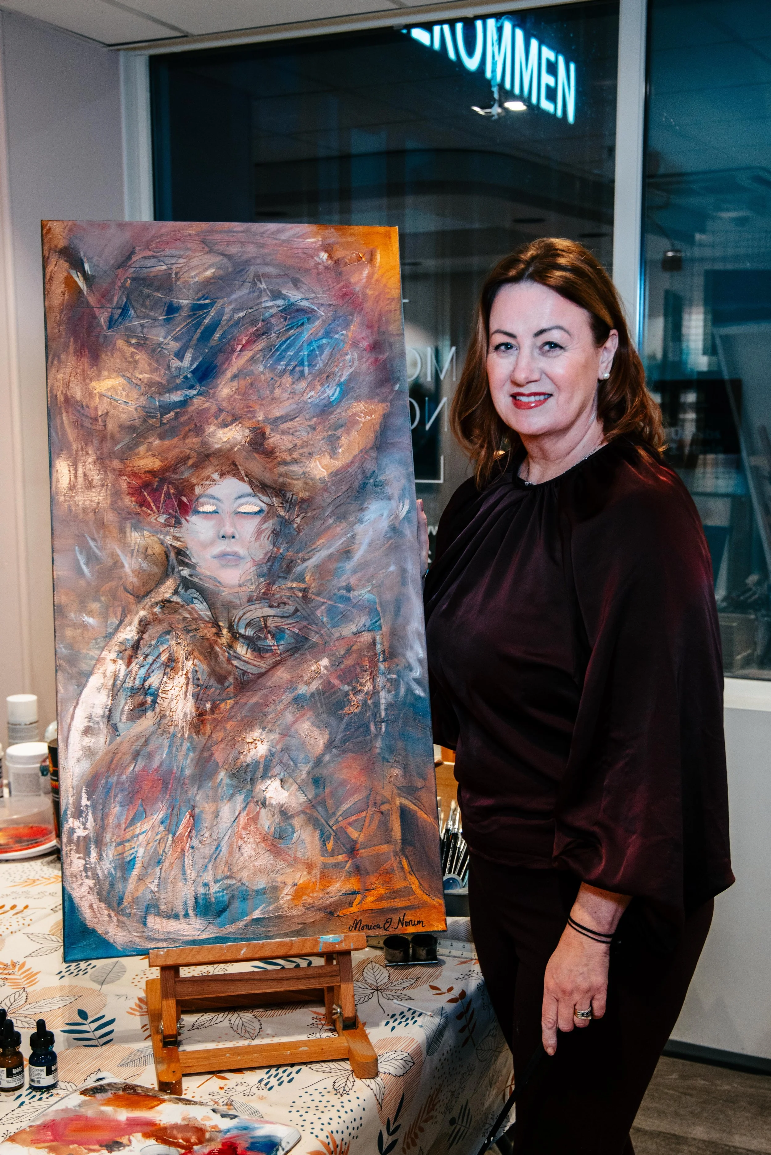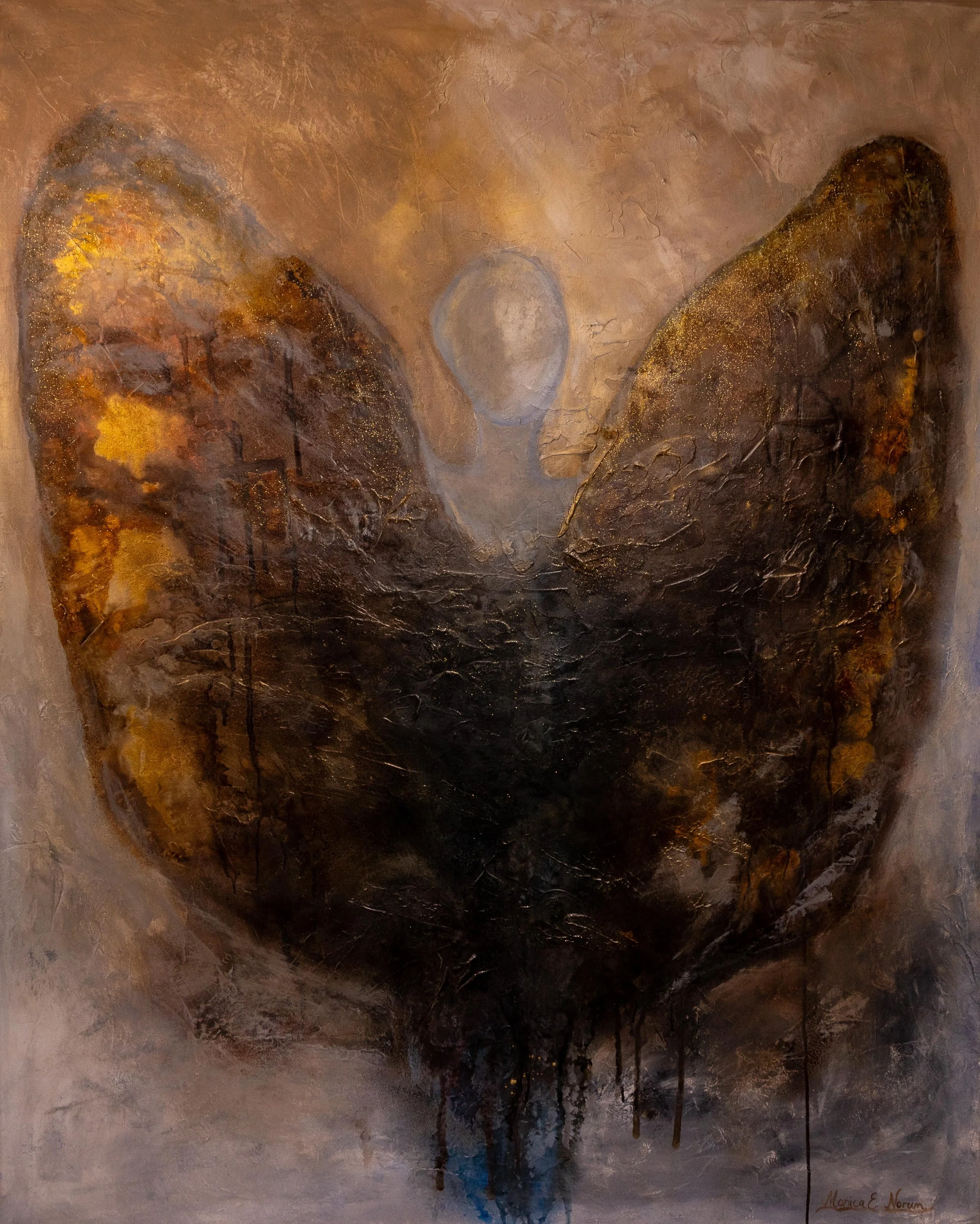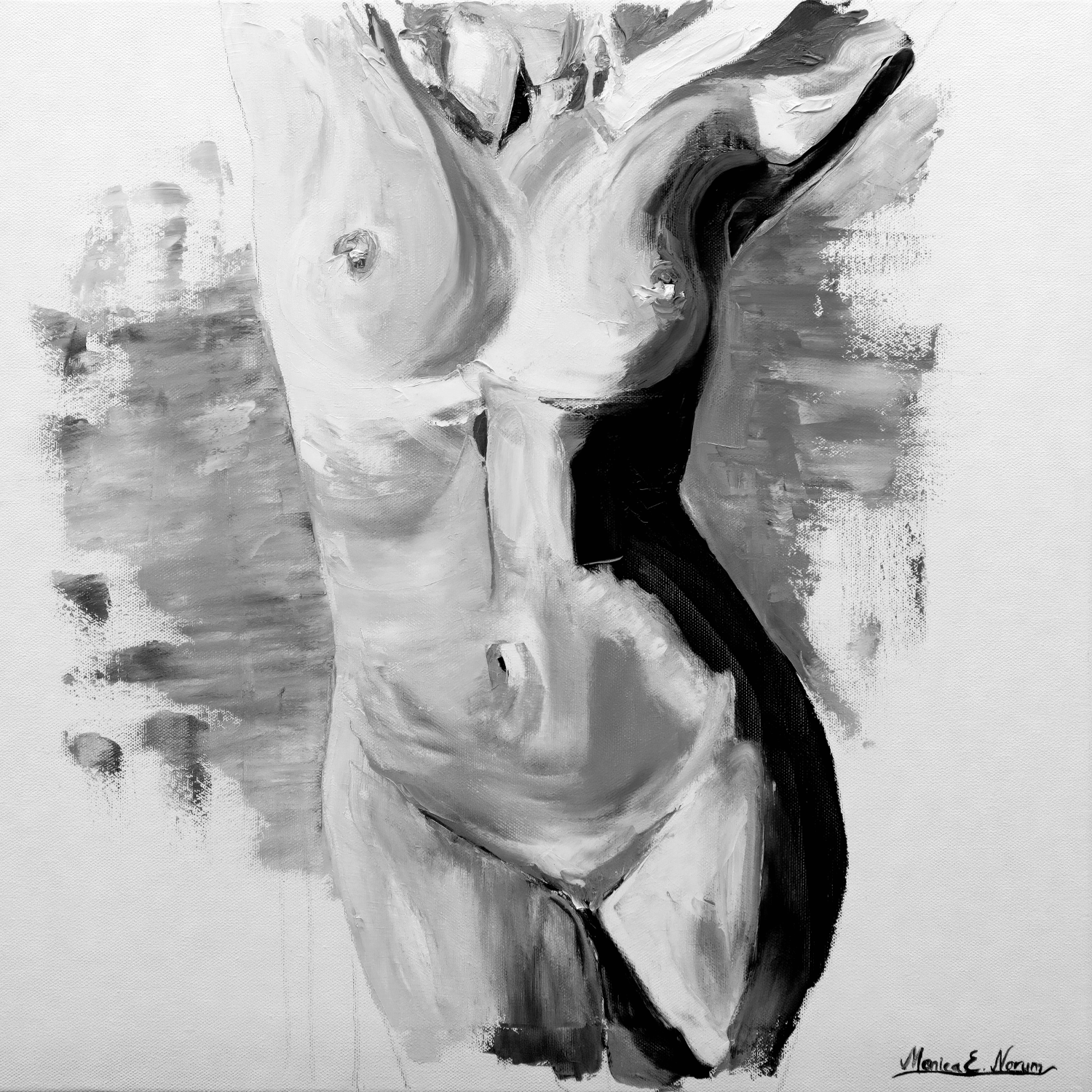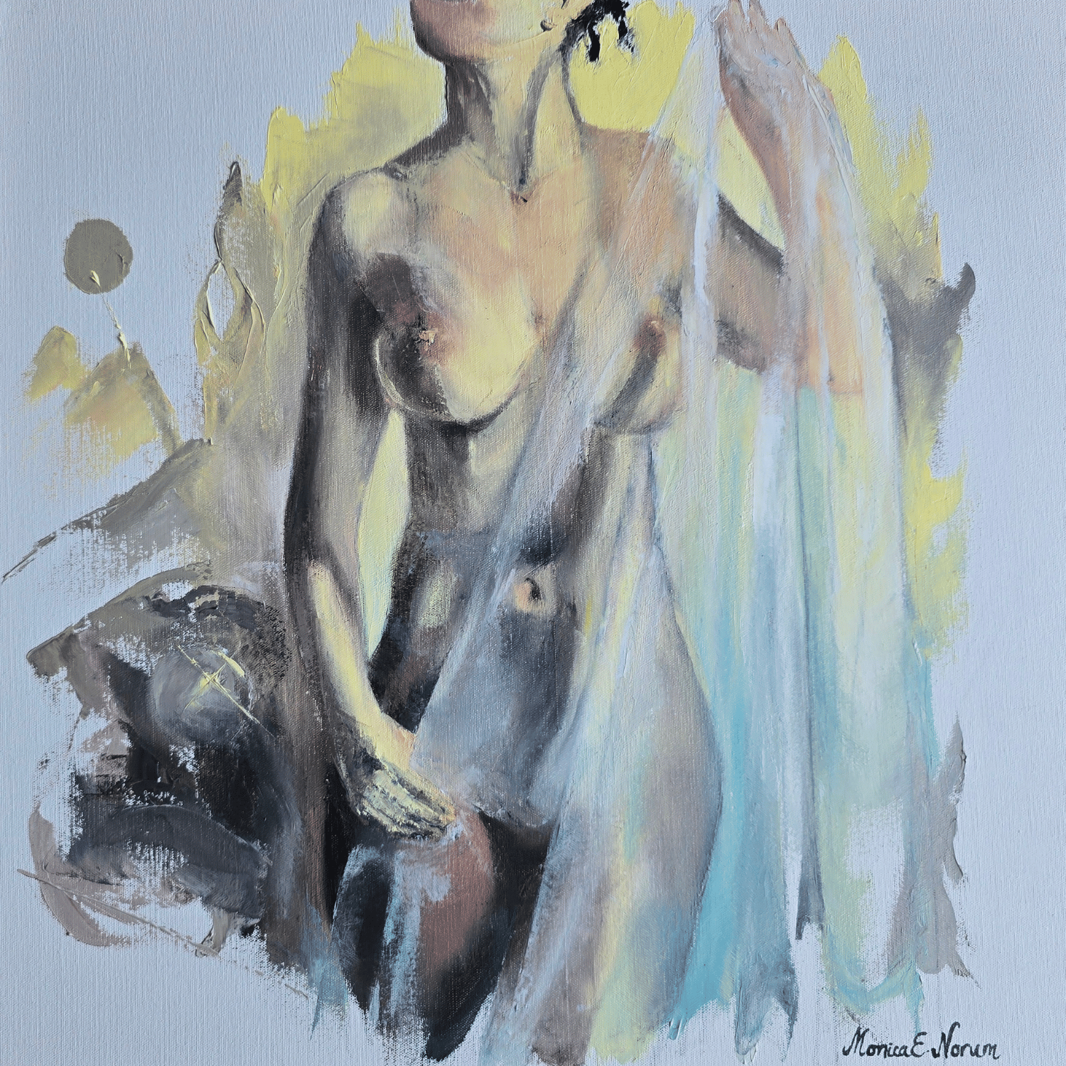 Monica Norum is a Norwegian artist working across oil, acrylic, and mixed media. She is known for her expressive paintings that balance structural awareness with intuitive gesture, often hovering between abstraction and figuration. Drawing inspiration from both the Old Masters—particularly the oil painting traditions of Rembrandt—and contemporary material practices, her work reflects a deep engagement with surface, time, and emotional presence.