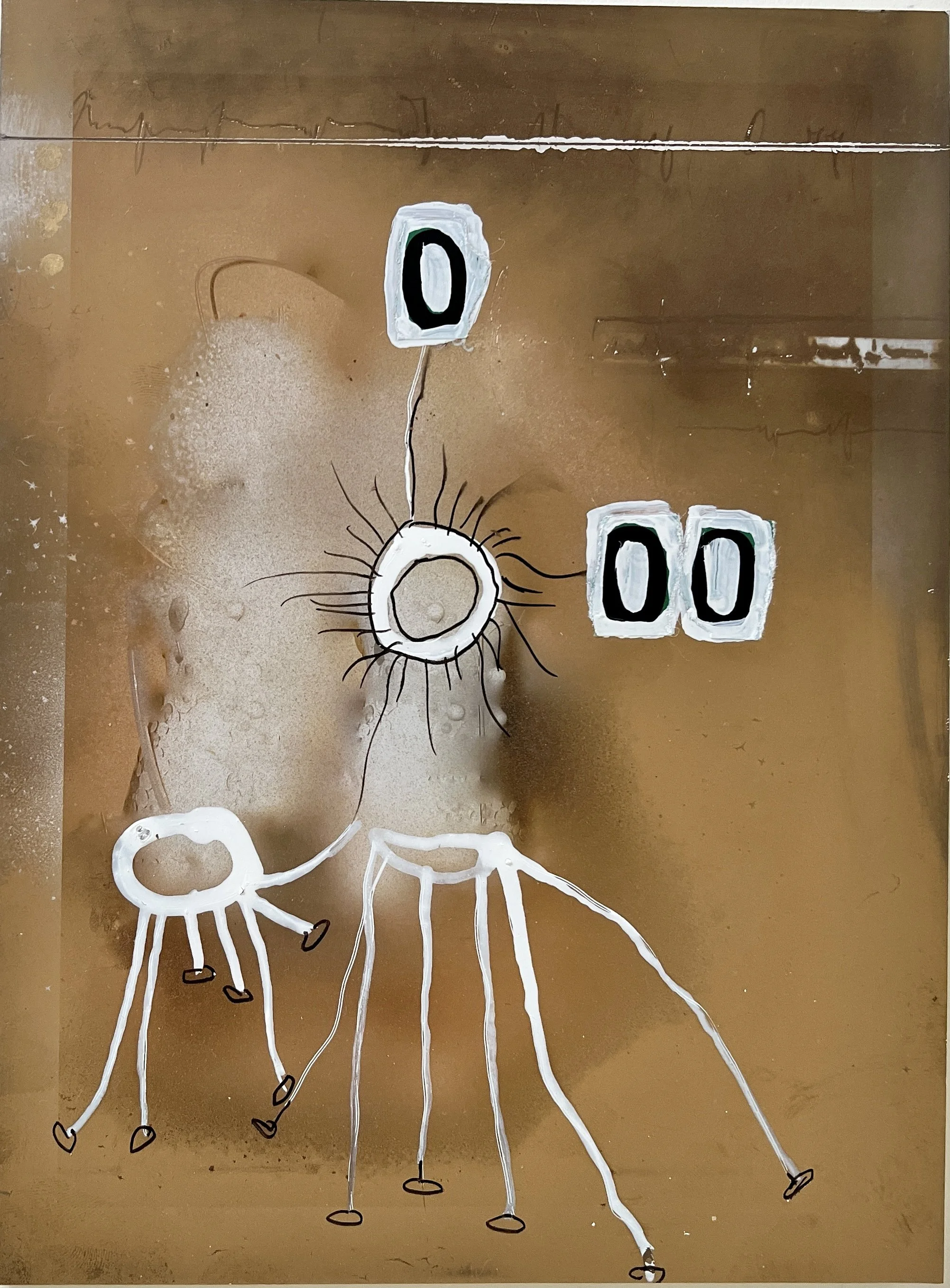 Examples from the journey of Octopods and Spacemen, Mixed Media hybrid Paintings, Unikate, framed, 26 x 20 cm