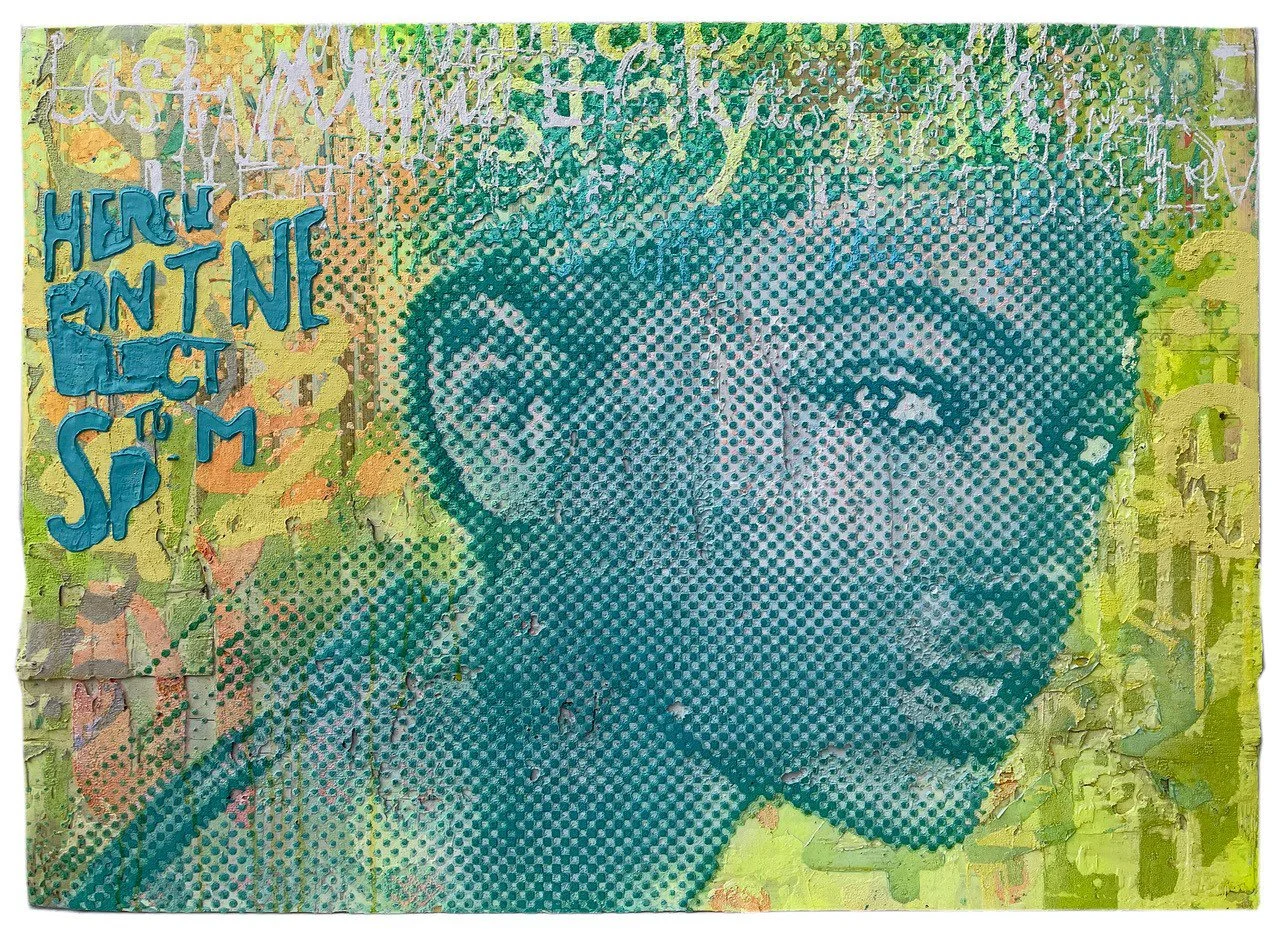 The exhibited works not only show reinterpretations of iconic portraits of women such as the ‘Mona Lisa’, but also honour contemporary heroines of everyday life. Whether Ukrainian female soldiers or Indian rubbish collectors - Casagranda gives them a dignified presence through her art. The integration of text fragments and the dot structure of her works, reminiscent of digital pixels, create an exciting bridge between historical role models and current social discourses.