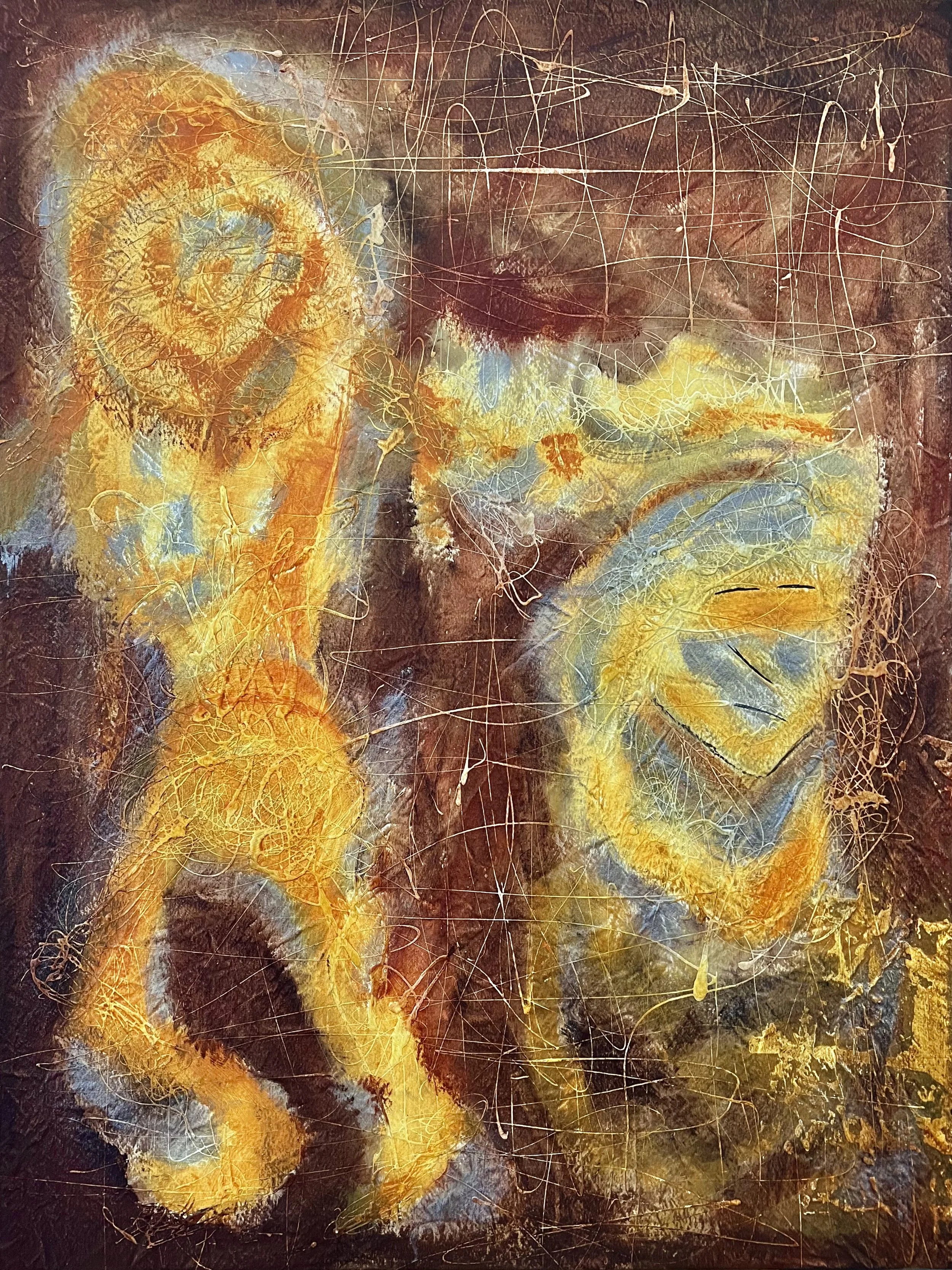 Crawling Back (Rust unto Gold), 2024. Acrylic and charcoal on canvas, 122 x 91 cm