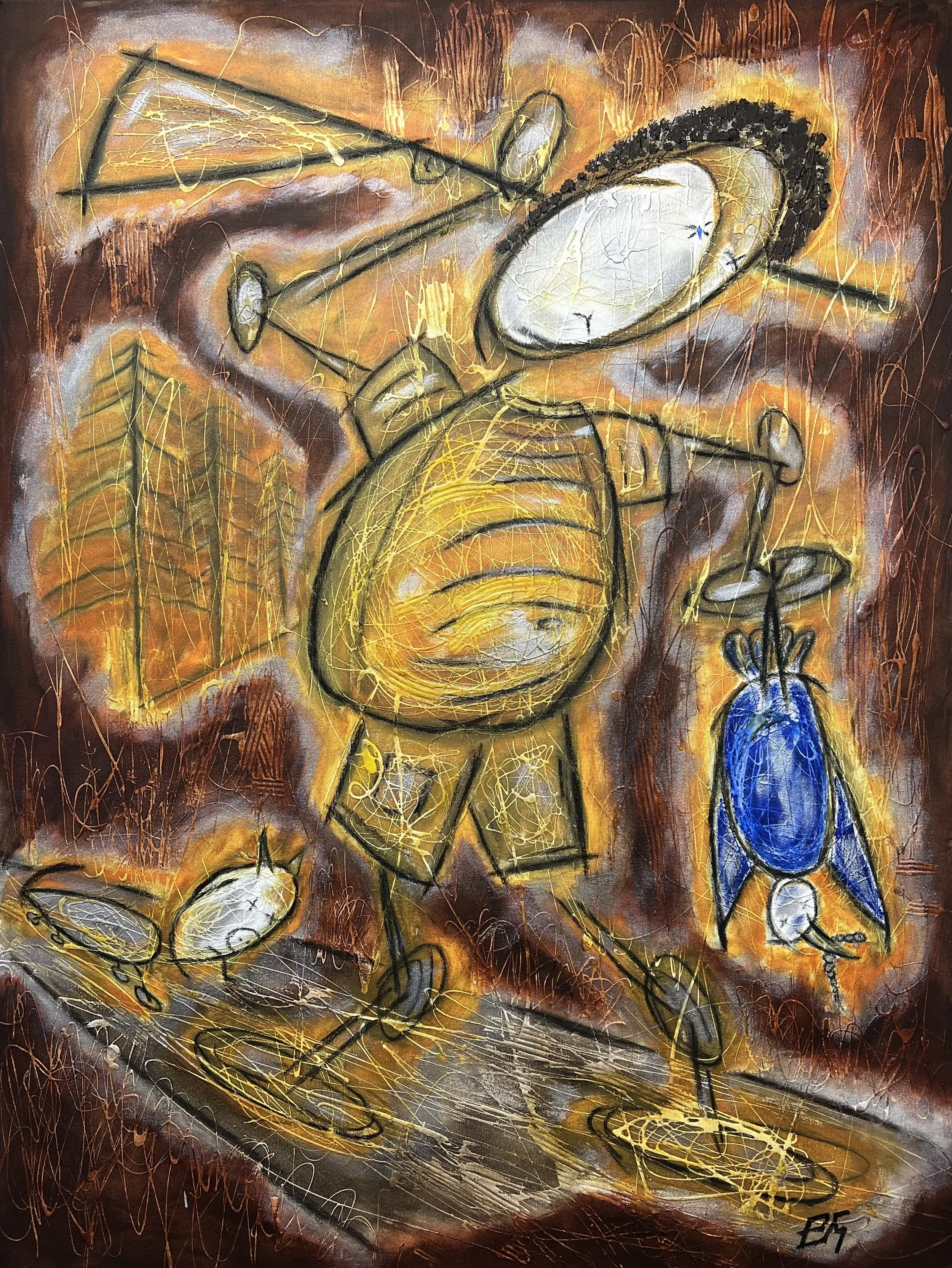 Master of Disaster (Rust unto Gold), 2024. Acrylic and charcoal on canvas, 122 x 91 cm