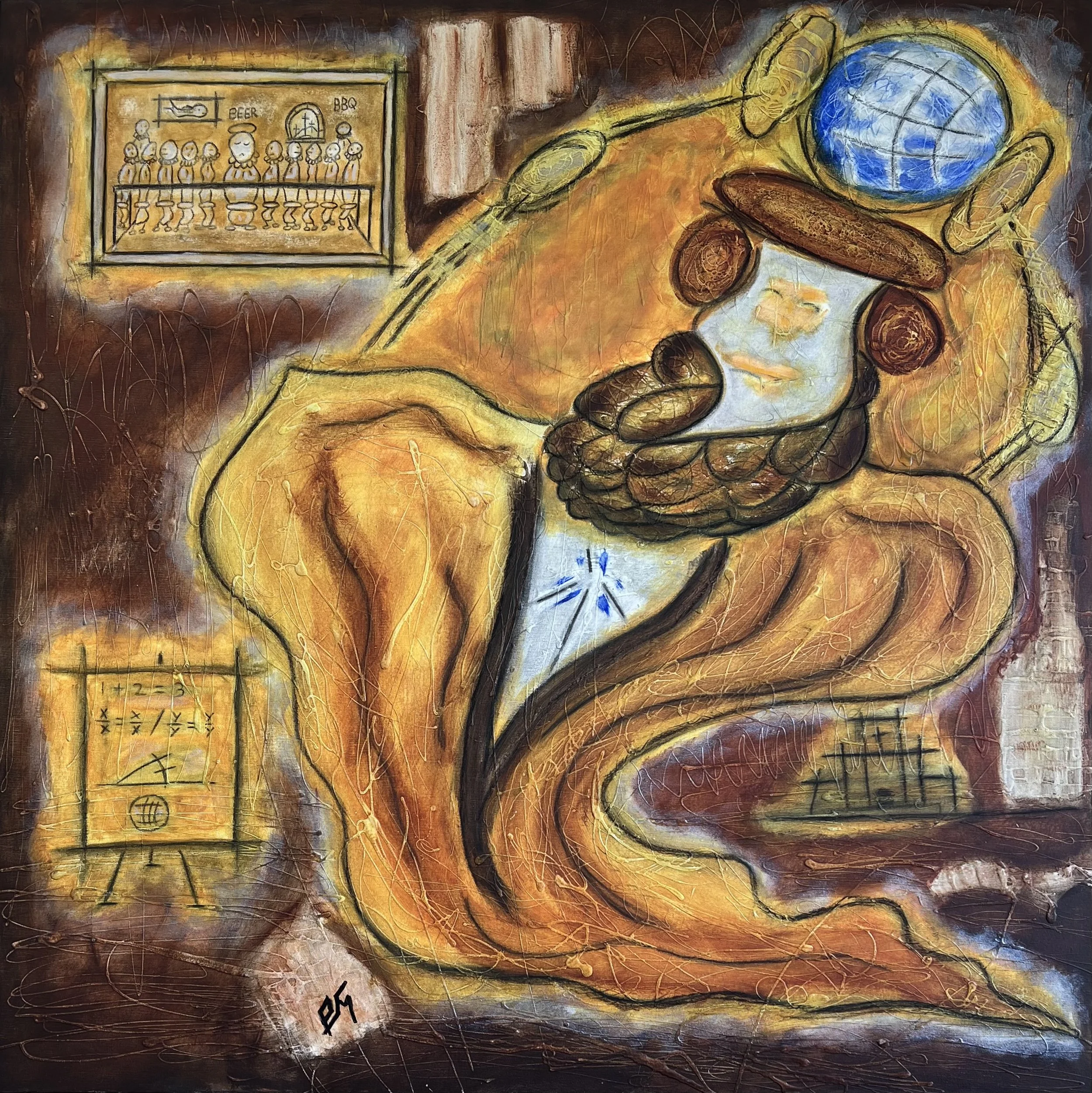 The Suffering of Leonardo (Rust unto Gold), 2024. Acrylic and charcoal on canvas, 122 x 122 cm