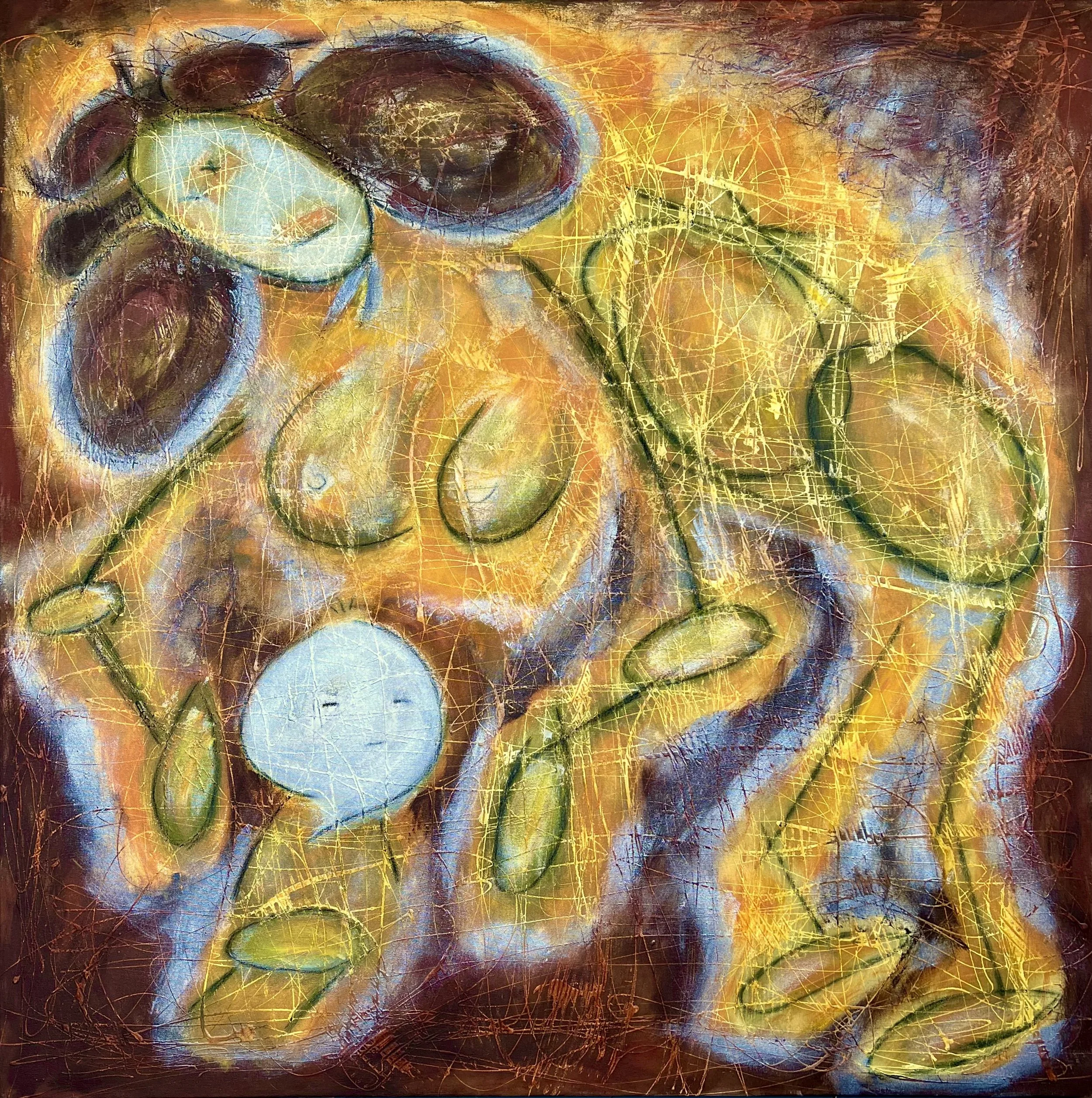 Mother and Child, Hopi (Rust unto Gold), 2024. Acrylic and charcoal on canvas, 122 x 122 cm