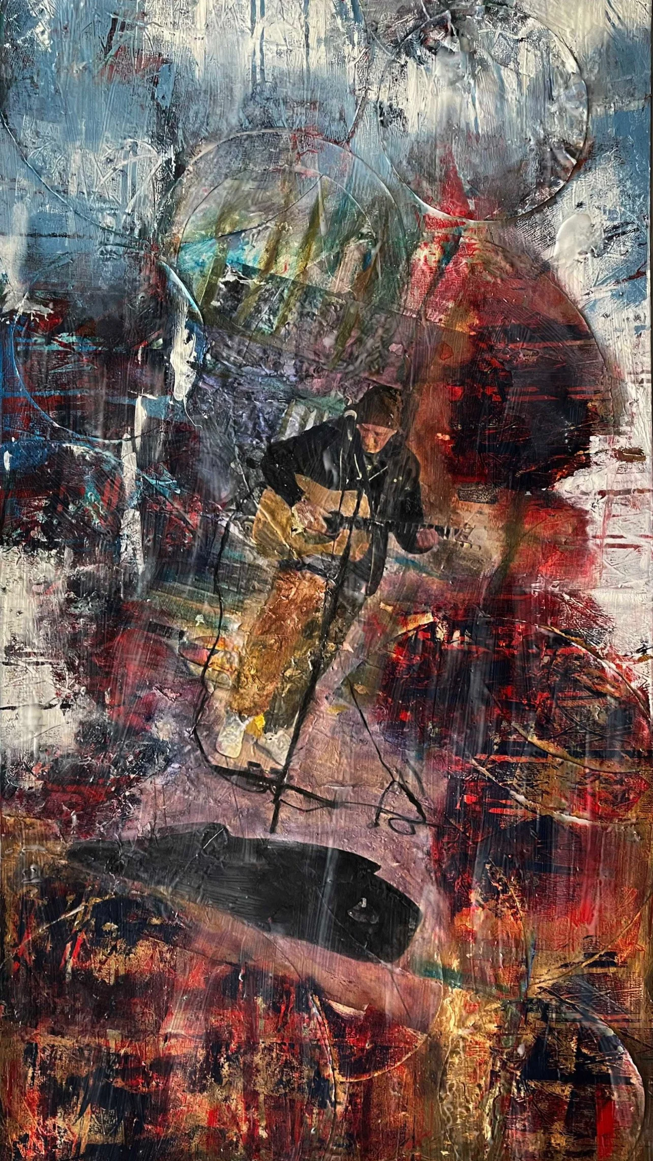 I am a fine art painter with some interest in print, video and digital work. I frequently use mixed media and integrate a range of visual languages together in the interest of experimentation, originality and inventiveness. I started showing passion for art and culture during my teens and progressed to study Painting, and then, Fine Art Digital at Postgraduate level. I have spent my life travelling in order to gather valuable insights into the human condition as well as our common predicaments. My most recent work looks also at coping mechanisms and how suspension in the vacuum of hypnotic repetition can help us to deal with ever-growing sense of pointlessness of existence.