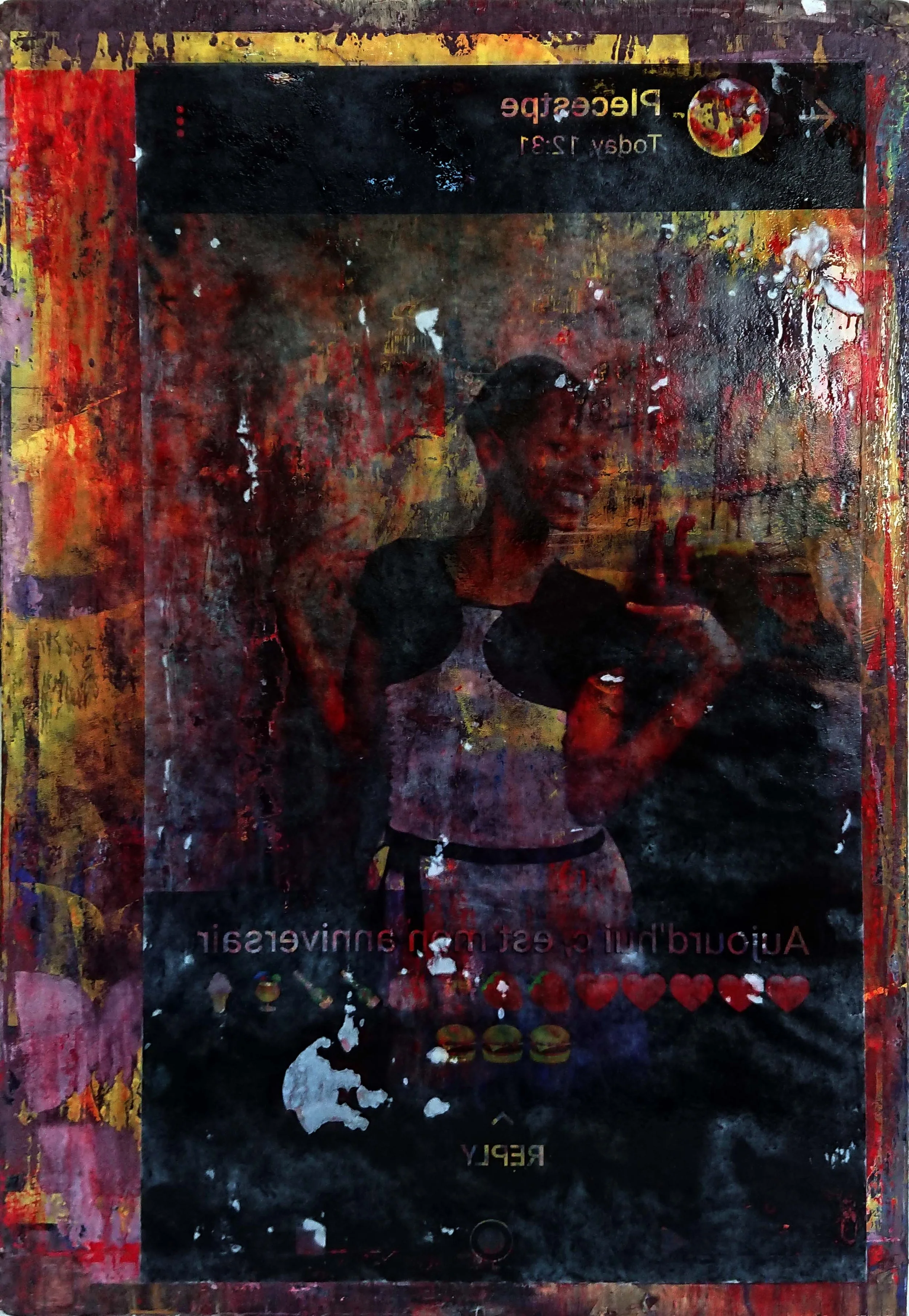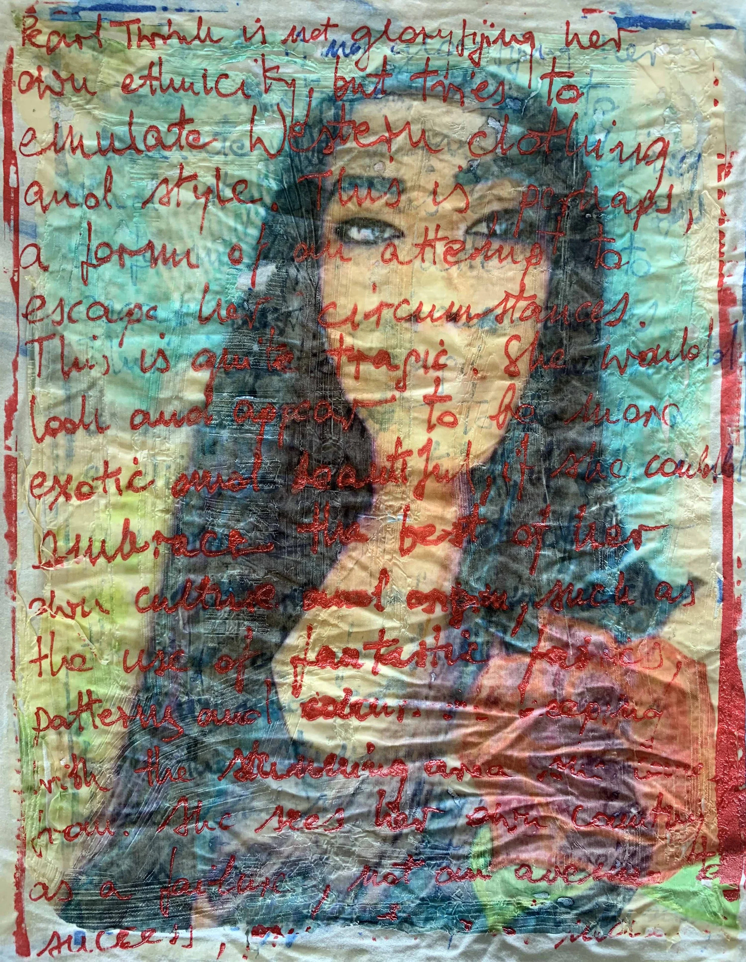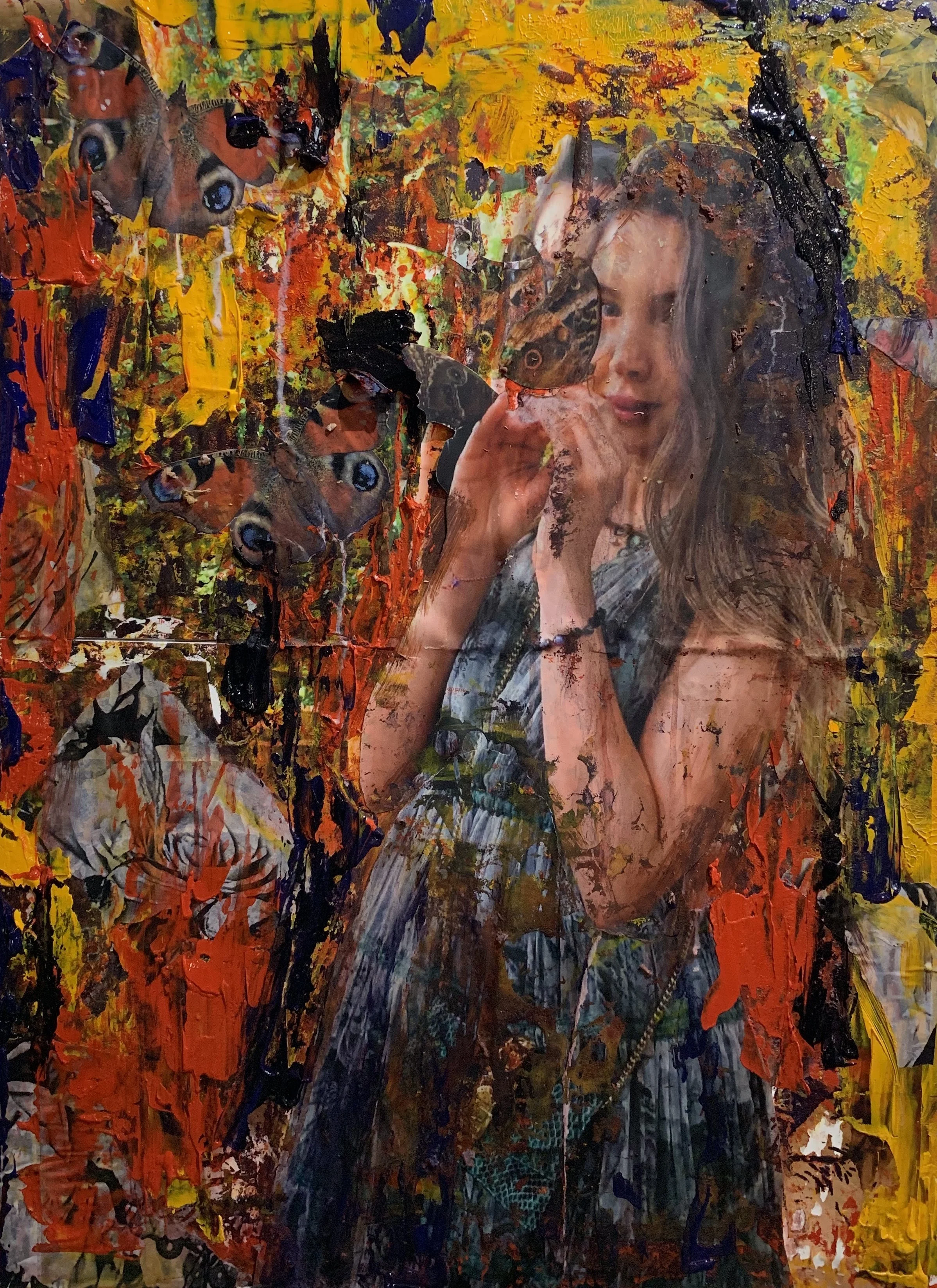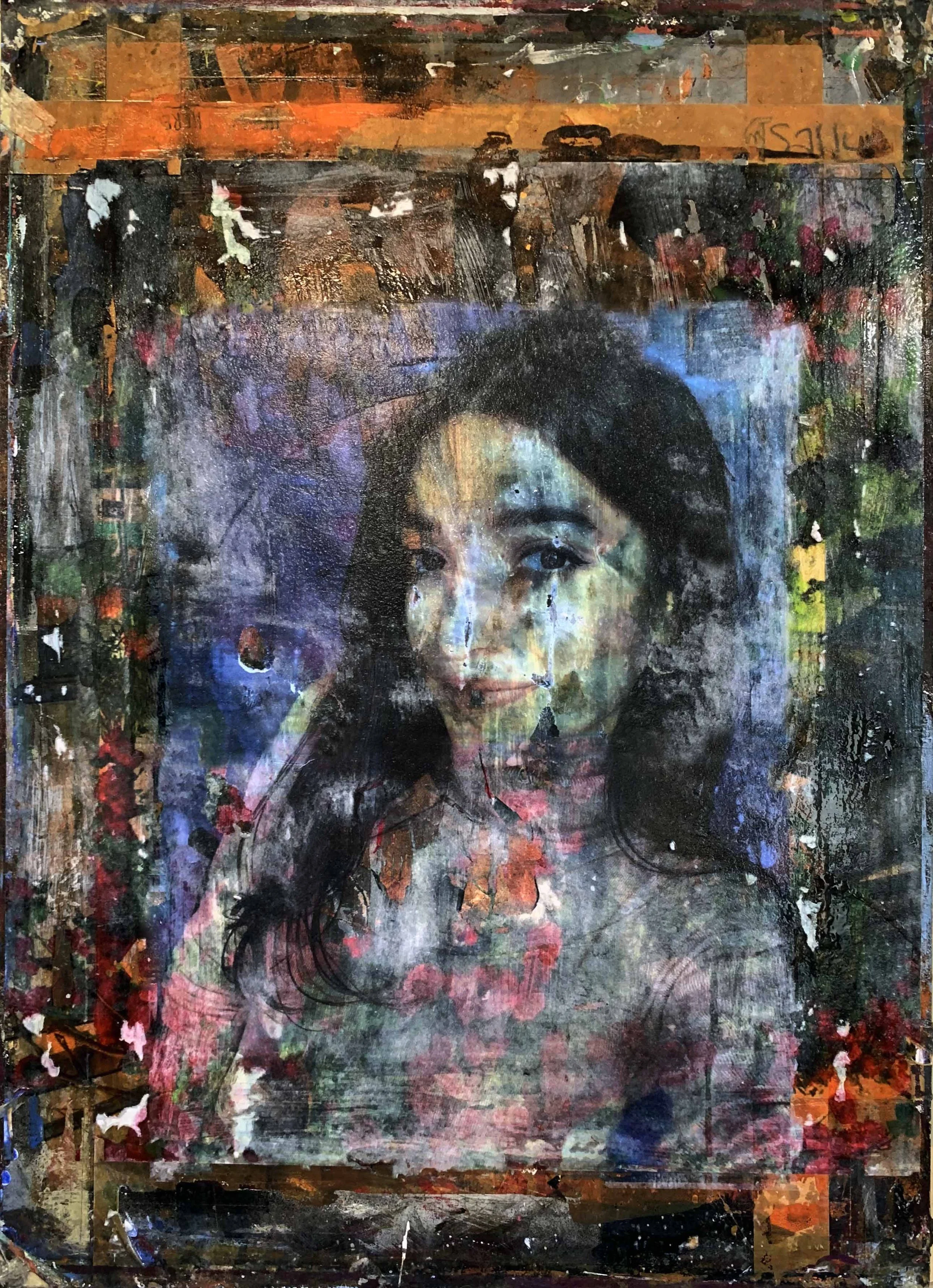 I start with establishing and refining a concept for each piece. This makes my work very personal and subjected to several ethical considerations. After all, I paint real people with challenging lives, full of feelings and emotions. My key creative intention is not to paint their superficial and obvious conditions, but to go deeper and focus on their strength, positivity and optimism. I start with an under-image and frequently progress to alternating layers of painting and printmaking.