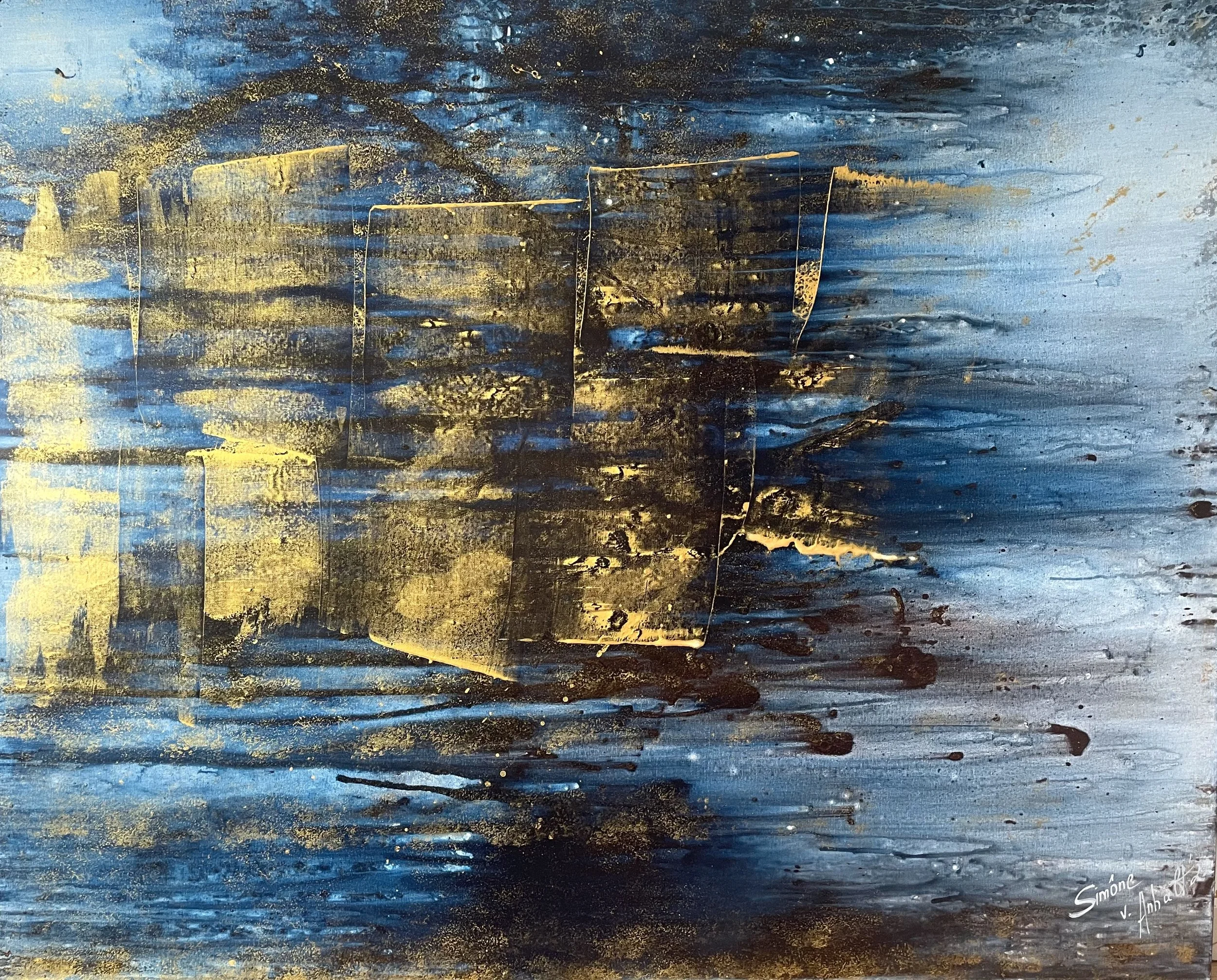 Her paintings connect the viewer with their inner being, unfolding reflective and personal emotions within us. Von Anhalt prefers to work in utter solitude, neglecting outside forces to channel her own inner self onto the canvas.