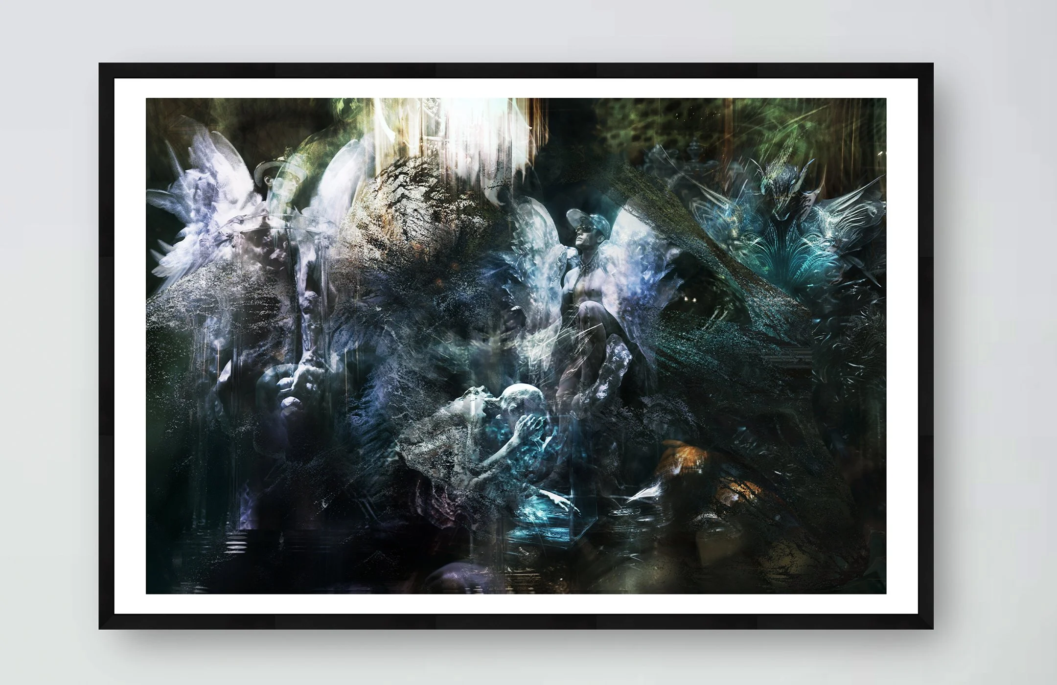 German Techno music, Catholic elements, and Greek Mythology are the main inspirations. H.R Giger and Hieronymus Bosch’s works gives her visual inspirations. Her aesthetic is also influenced by goth and punk culture. Traditional photography and fascination with new technology are also of great inspiration to her who then challenge herself in manipulating various medias to combine this visually. The works in this exhibit feature a range of photography and new technology manipulation techniques, various types of processed colour grading and compositions.