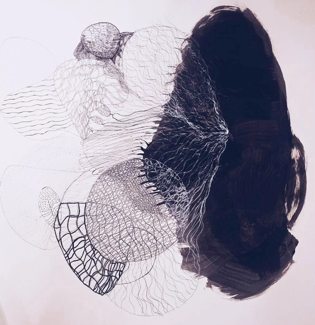 Organized Chaos series#1,2024, Freehand ink drawing on acidfree paper,20x25 cm.