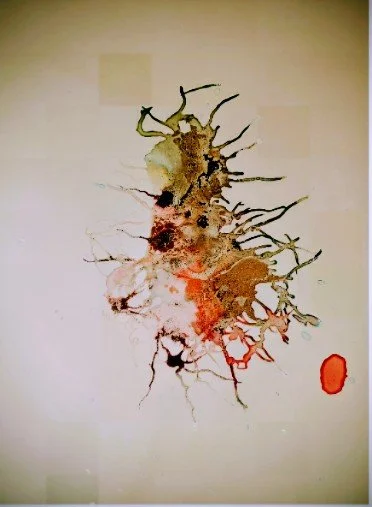 Foredged inks #2,2025 Freehand natural foredged material on yupo, 71.12 x 55.88 cm.