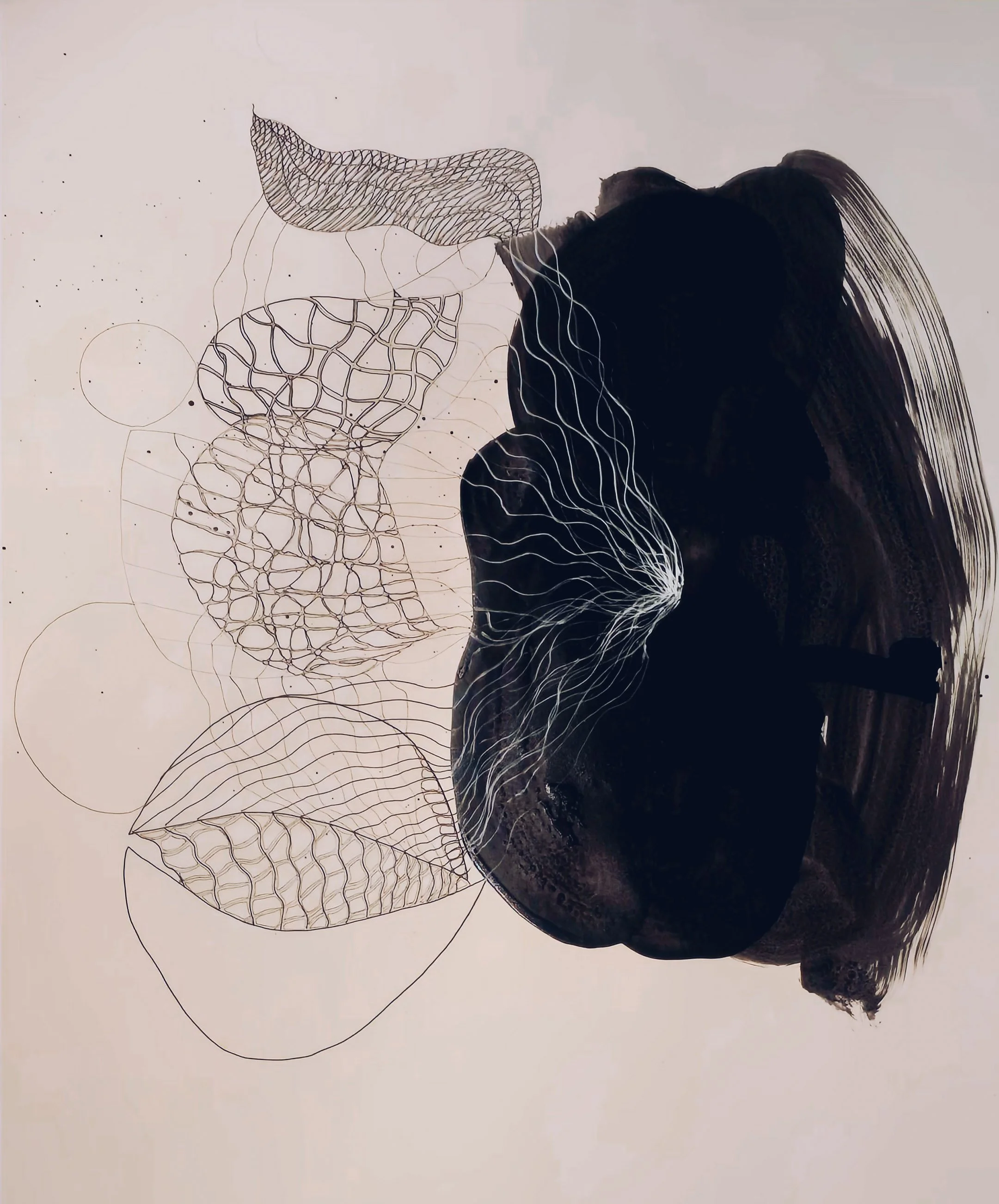 Beginning of life series #1,2025 Freehand ink drawing on acidfree 300lb watercolor paper, 152.x101 cm.