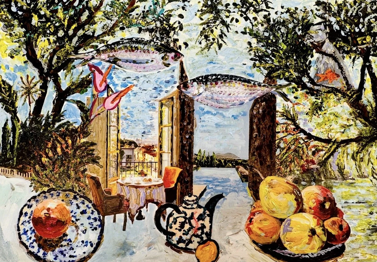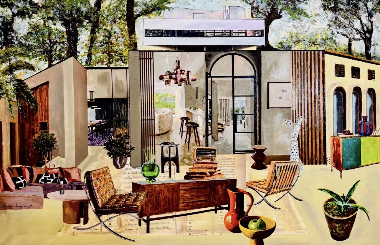 Ultimately, Stephanie Bing’s practice is an ongoing exploration of how art can transform the ordinary notion of “interior” into a rich, expansive arena of thought and feeling. Her canvases invite viewers to step beyond the purely visible, to inhabit spaces where memory, dream, design, and myth collide. By fusing technical discipline with imaginative freedom, and symbolic depth with unapologetic visual delight, her work proposes a contemporary form of sanctuary—one that does not retreat from the world but absorbs it, reconfigures it, and offers it back as an invitation to look more closely, feel more deeply, and embrace the complexity and radiance of being alive.