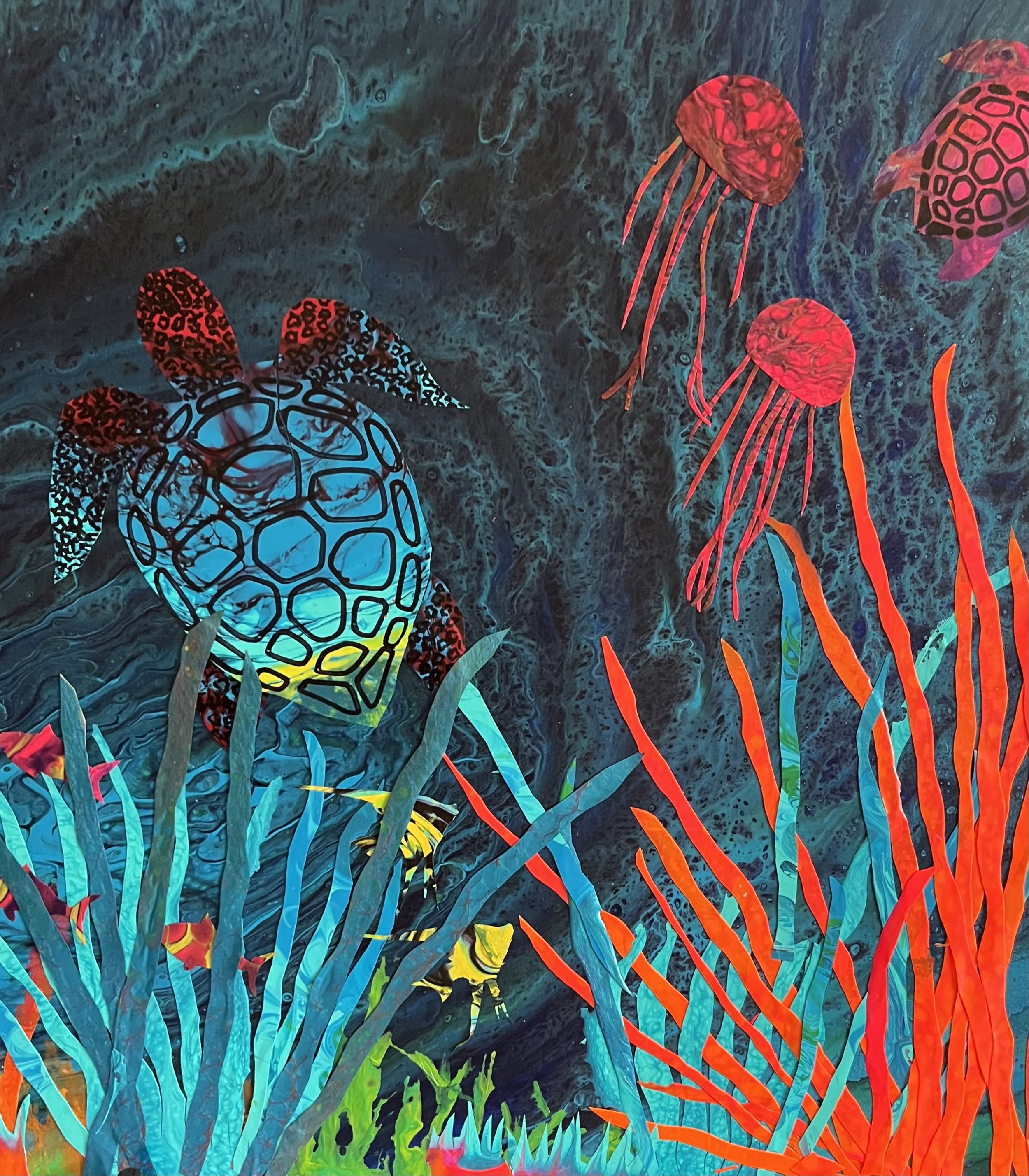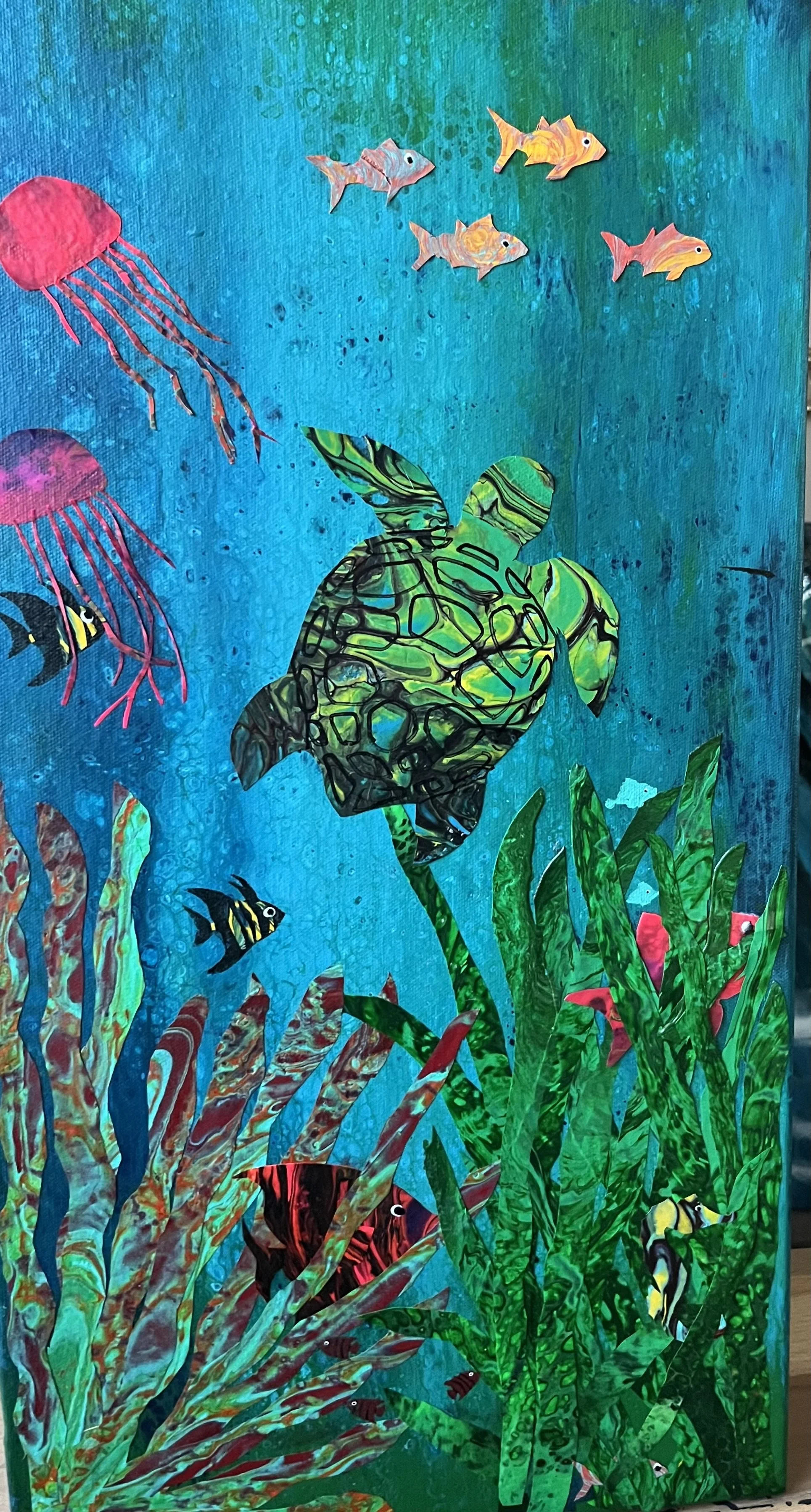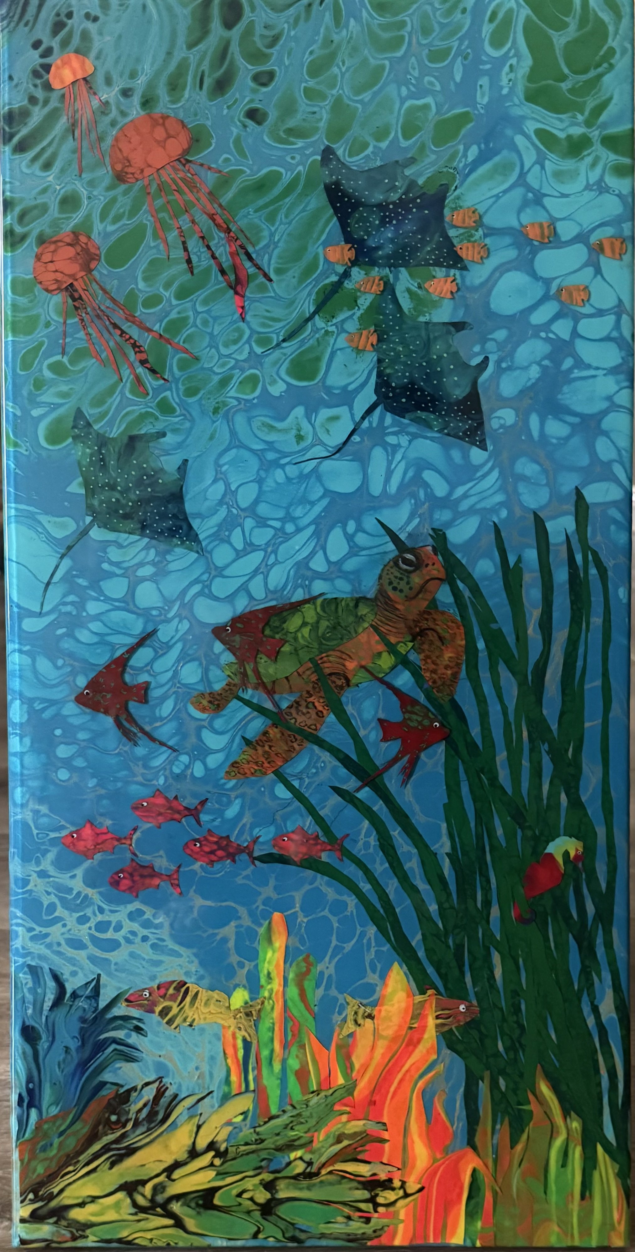 Turtle Paradise, 2023. Acrylic/Resin, 38.1 x 76.2 cm