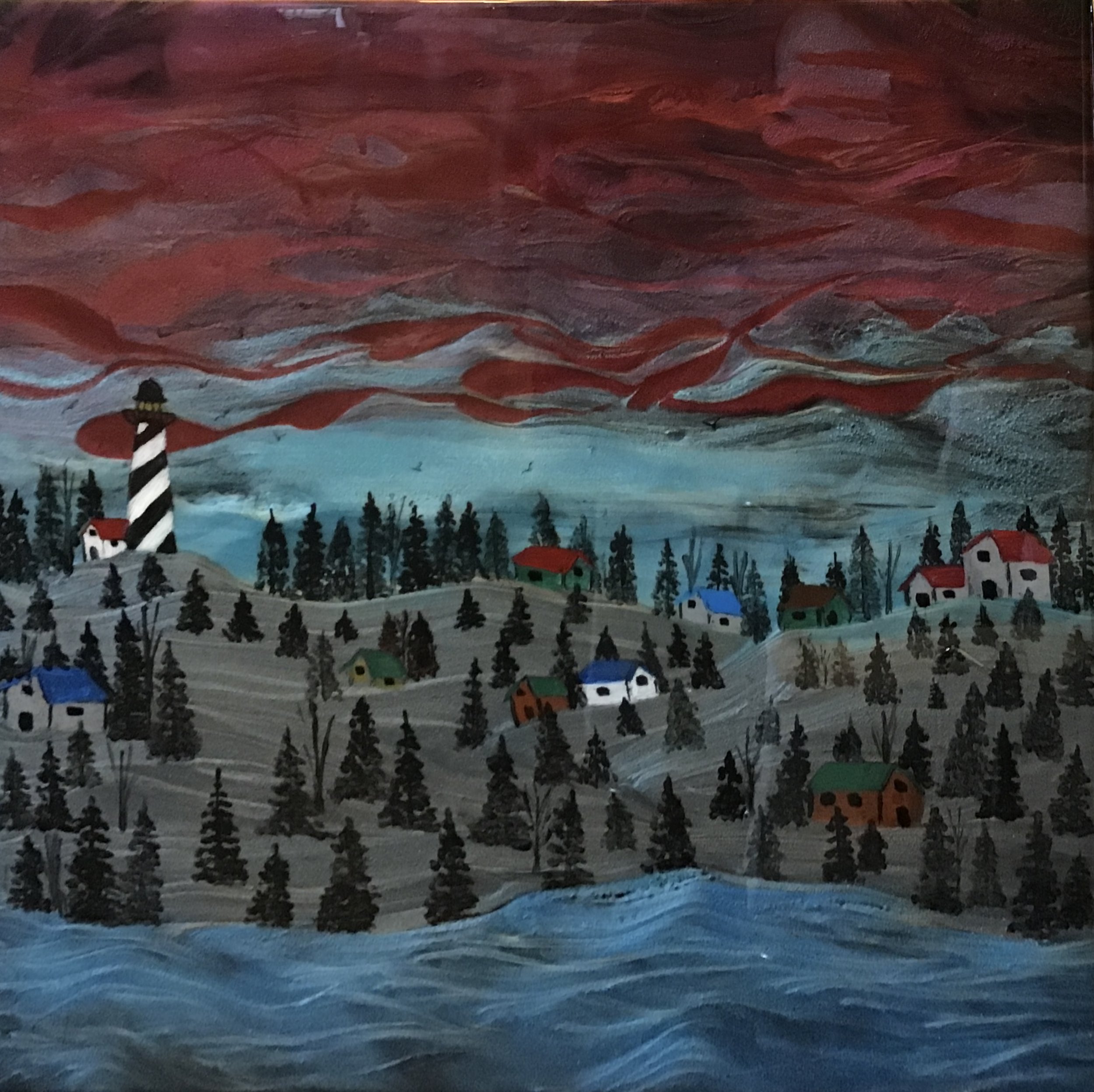 Lighthouse Village, 2021. Acrylic/Resin, 30.48 x 30.48 cm