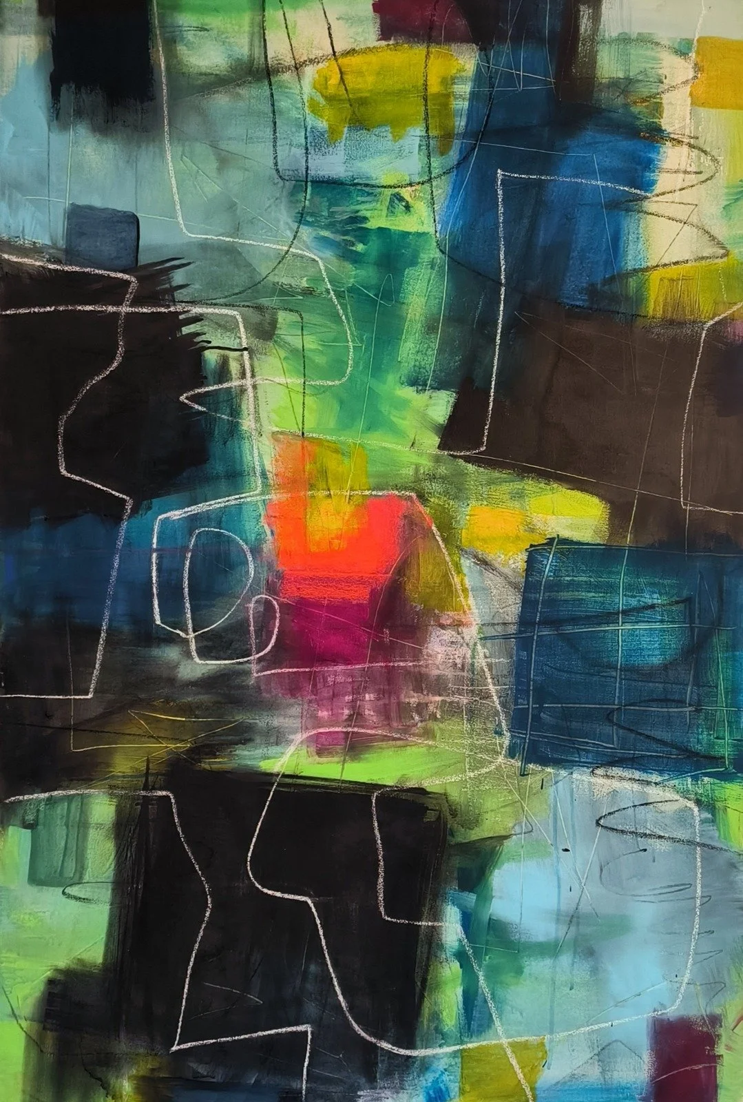 Escape from the chaos, 2024. Acrylic and pastel on canvas, 100 x 120 cm