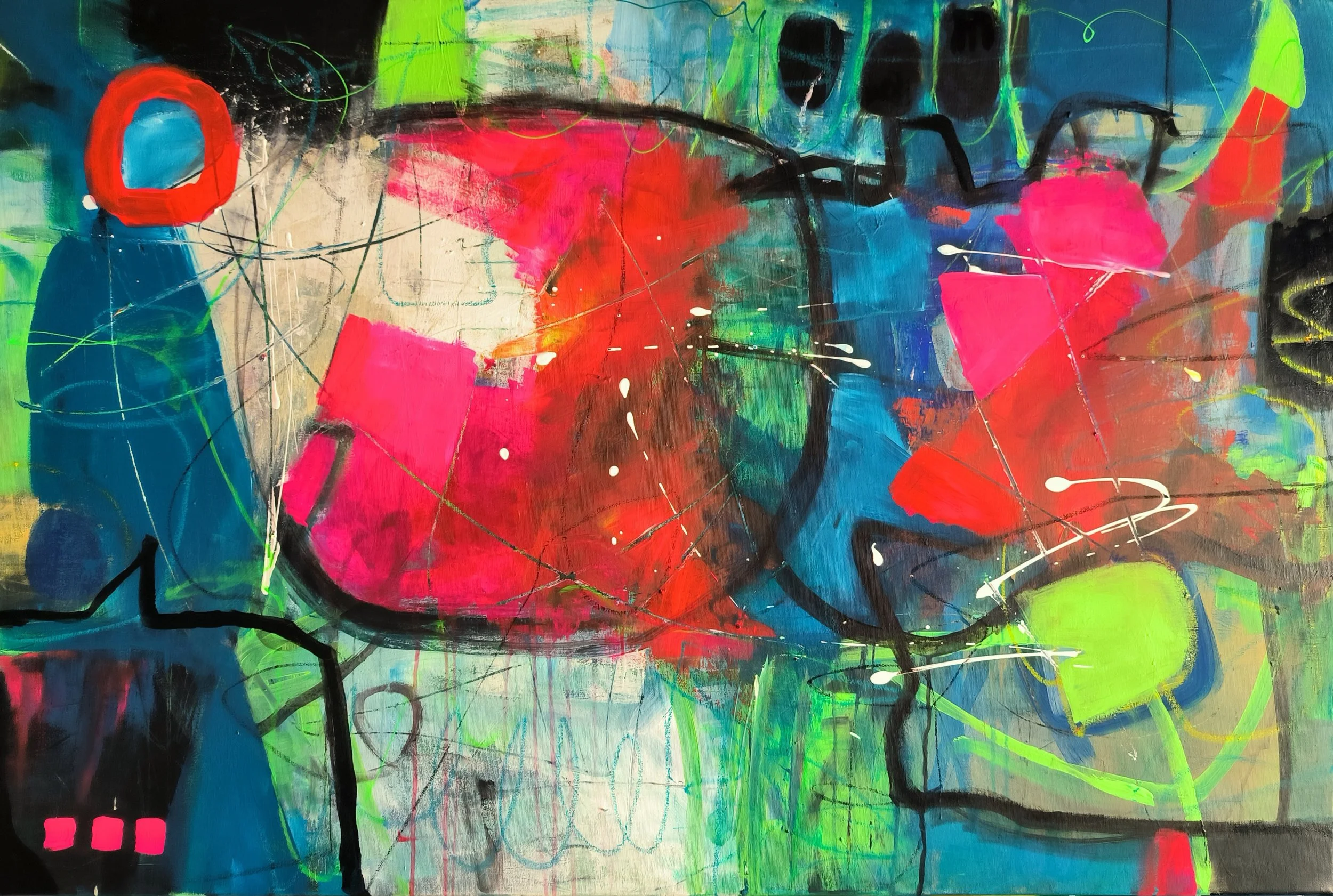 Nature’s colors 3, 2024 . Acrylic, pastel and ink on canvas, 80 x 120 cm