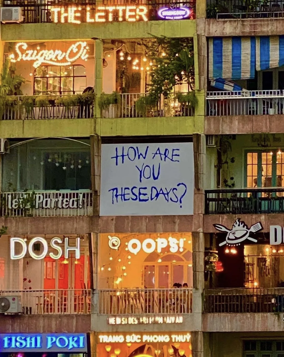 His ongoing performance practice, embodied in the poignant question "How are you these days?", serves as the artist's voyage into the realm of art. Đại’s artistic endeavors intertwine with the realm of non- profit art therapy, enriching his journey with a profound impact on both himself and those who engage with his installations.