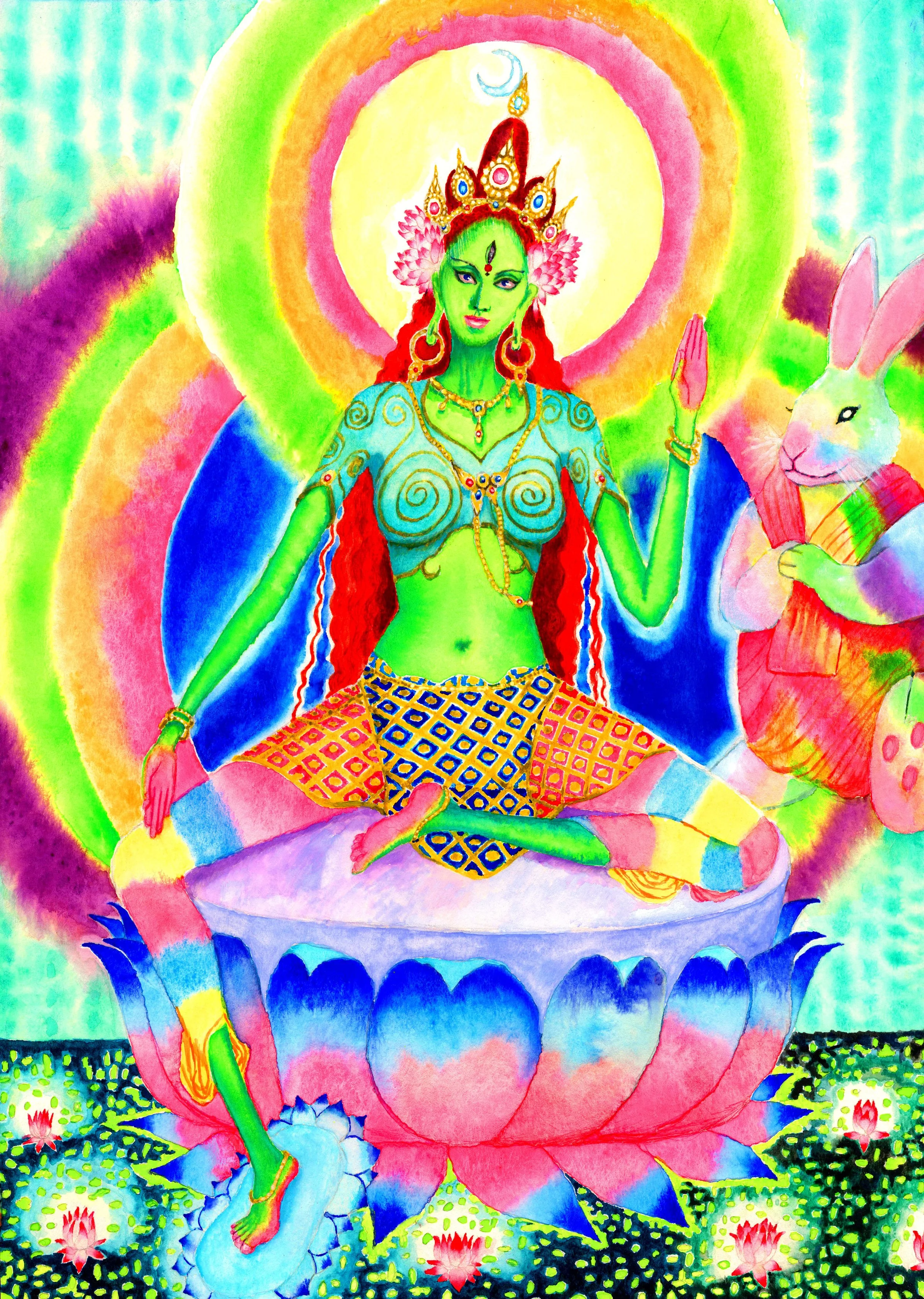 Green Tara, 2021, watercolor and gouache on paper, 30 x 42 cm.