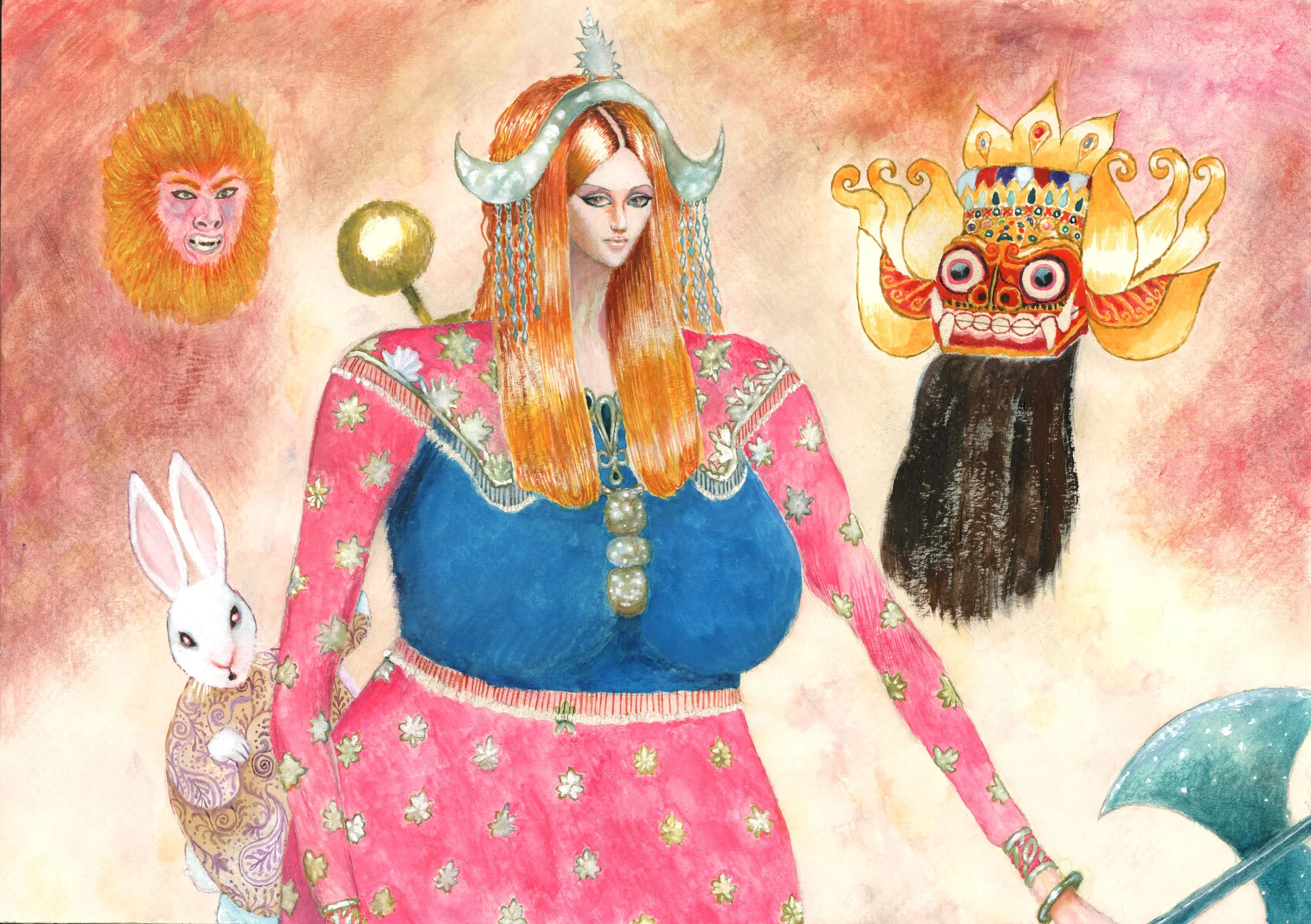 The Shamaness, 2020, watercolor and gouache on paper, 29,7 x 42 cm.