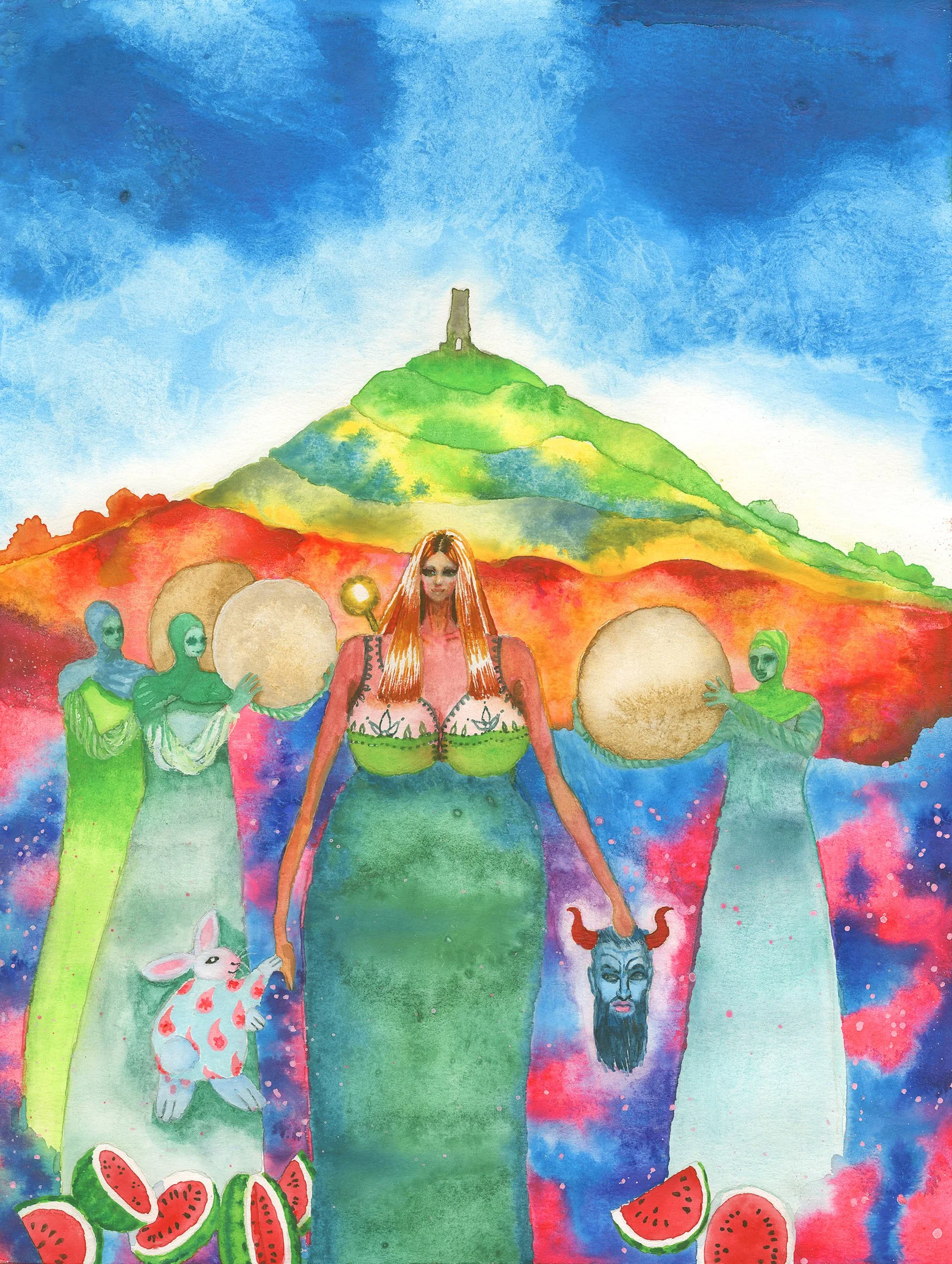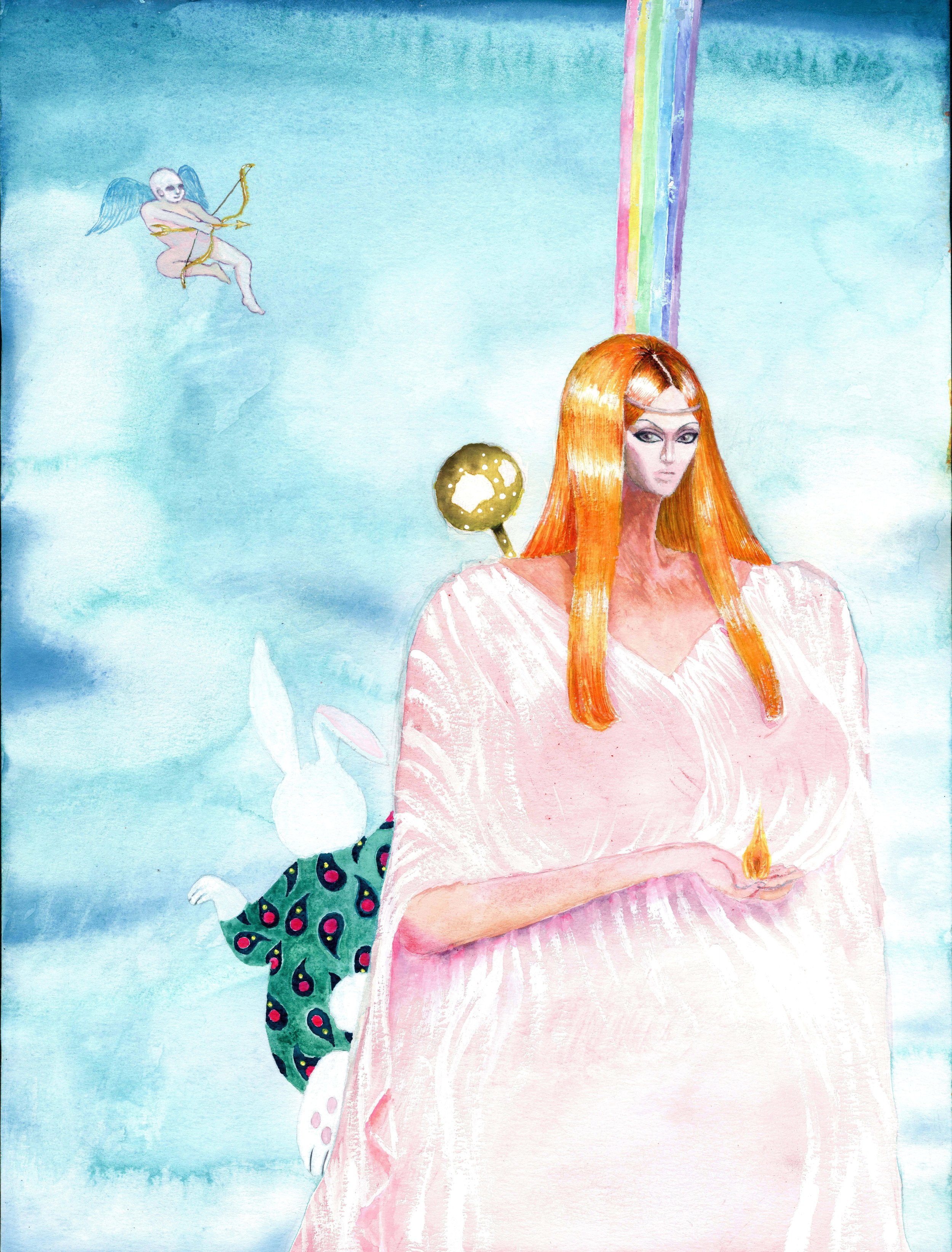 Alpine Goddess, 2023, watercolor and gouache on paper, 41,5 x 29,5 cm.