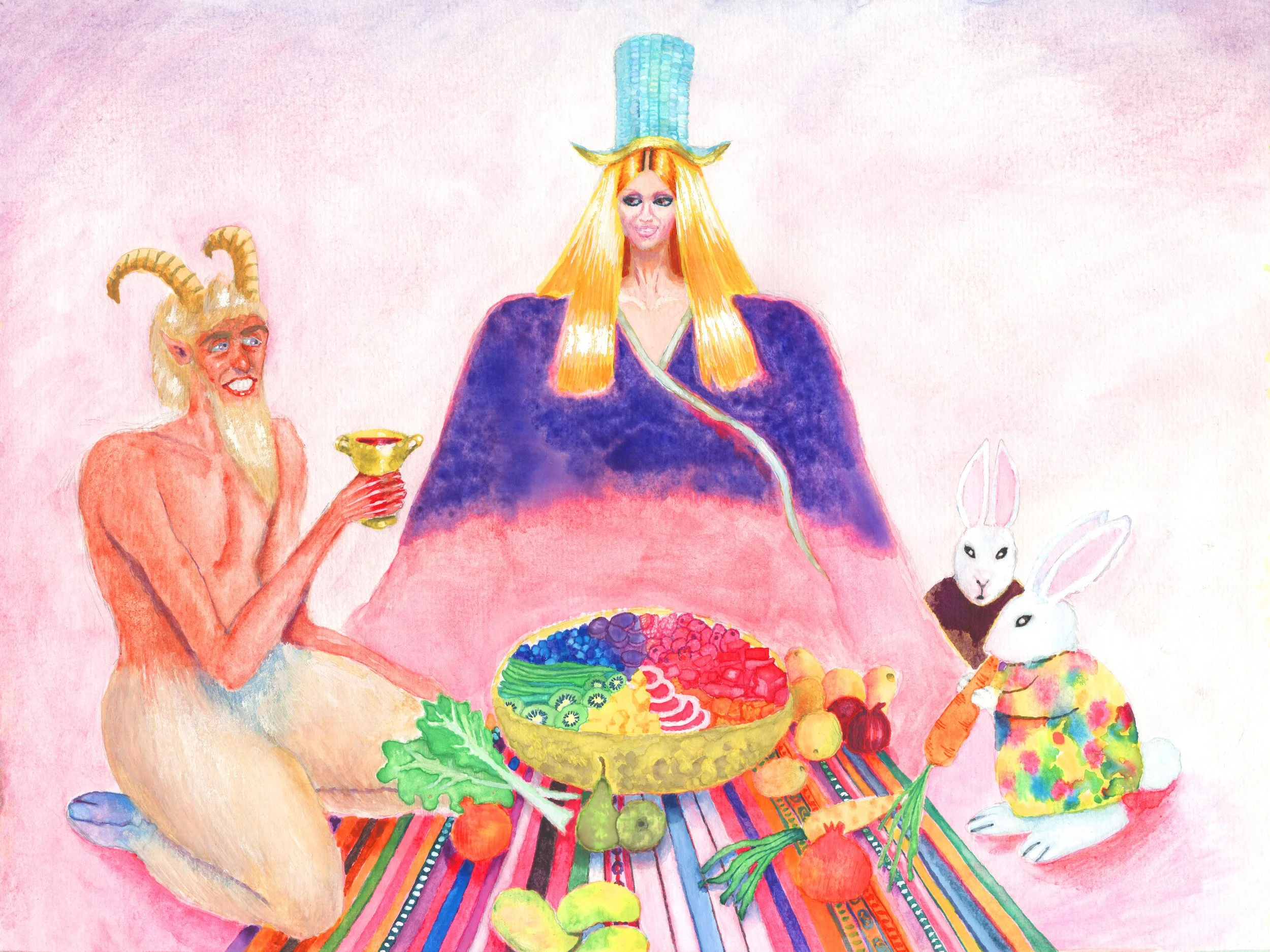 Petit Déjeuner Archadique, 2018, watercolor on paper, 24 x 32 cm.