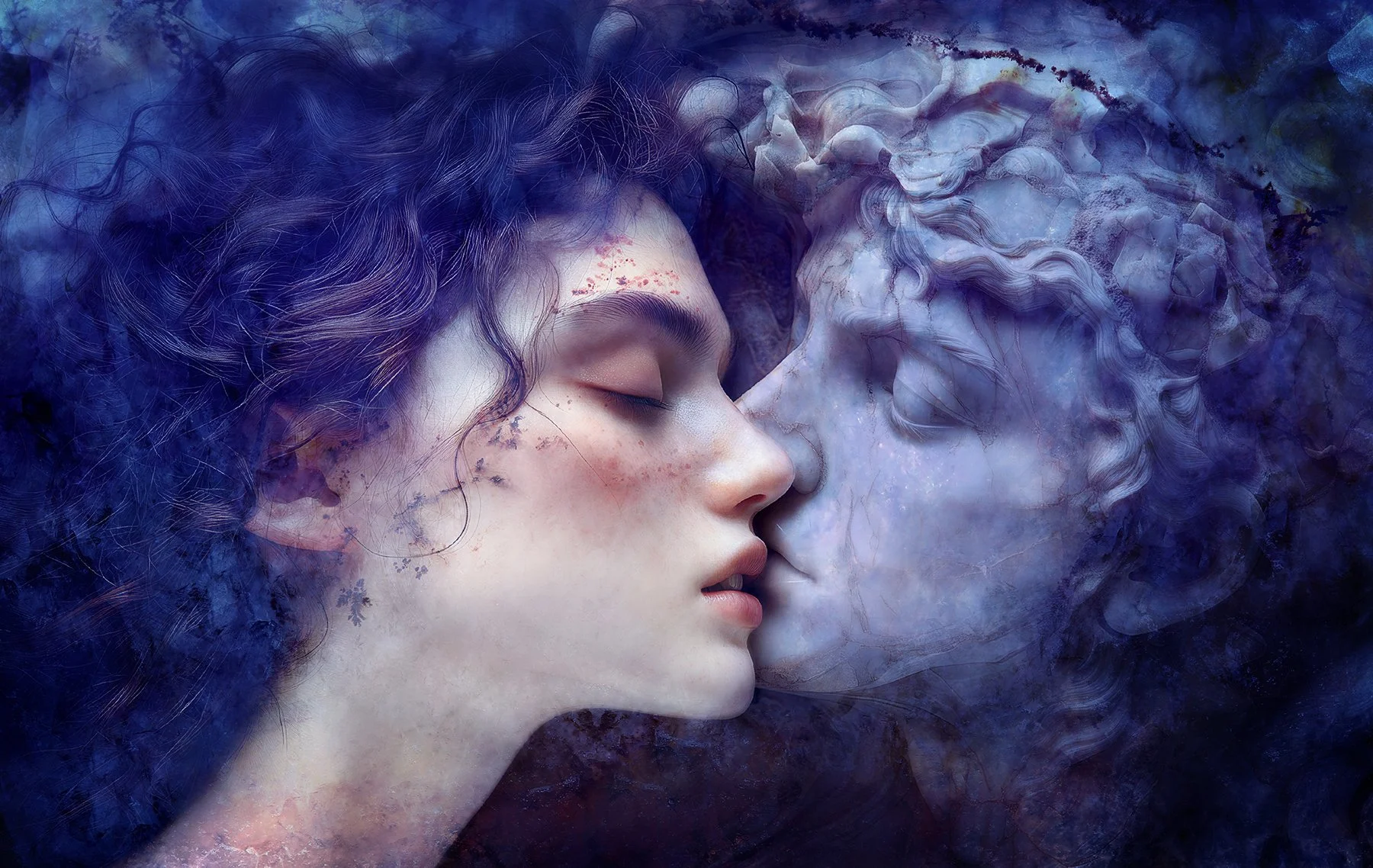 I have long been interested in Jungian psychology, which revealed the power of archetypes as deep structures of the psyche. Only recently have I turned toward mythology: it acts as a timeless matrix, a symbolic fabric that connects us to foundational narratives. These stories, despite the centuries, continue to shape our imagination and illuminate our emotions; they are mirrors of the soul. They belong to a collective memory. What interests me above all is what goes beyond narration: the raw emotion, the state of being of the characters that belongs to our deepest human nature. Contemporary tools, especially those related to digital imagery, open new pathways and a fresh exploration of visual expression.