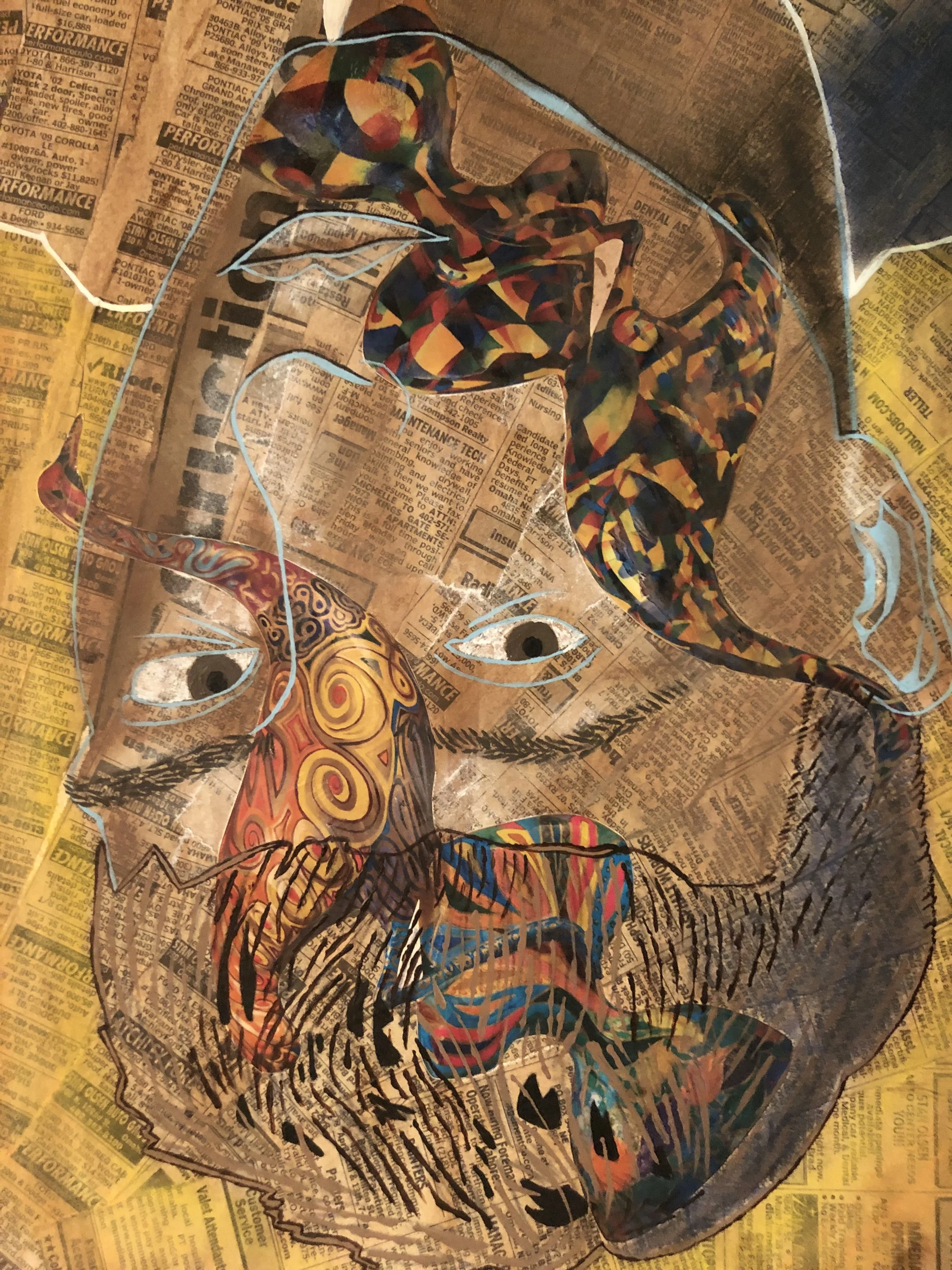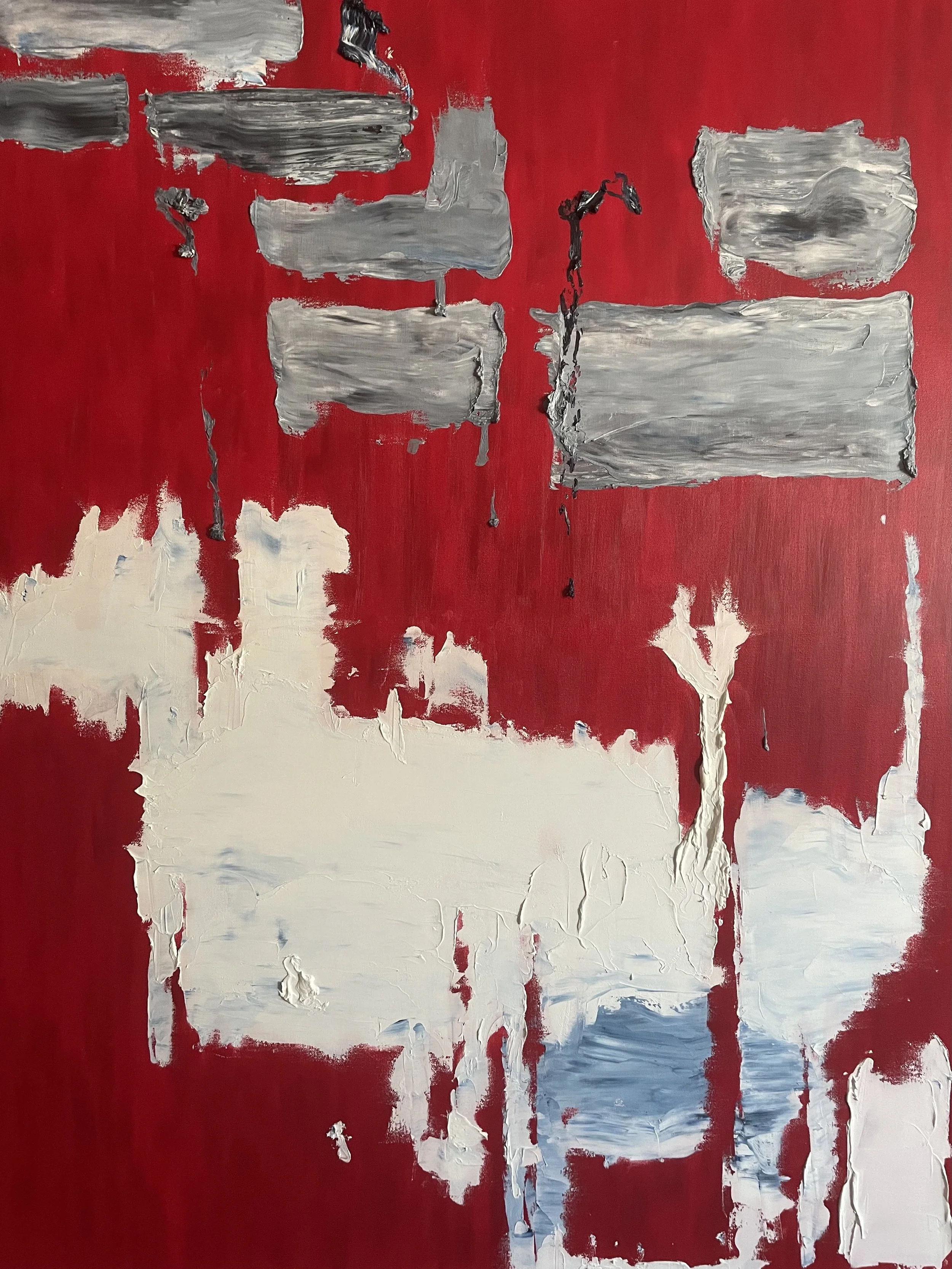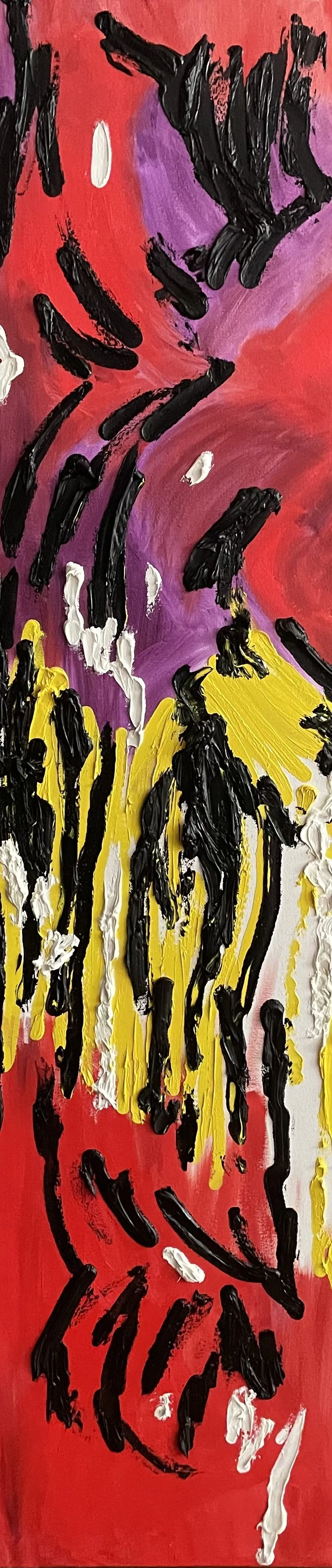 I couldn't comment on the emotional or psychological impact of color in my art. It is something I can feel from others' works. I can occasionally glimpse it in my finished work, but mostly am in a temporary transfixed state of being through pushing paint, pen, or wood around.
