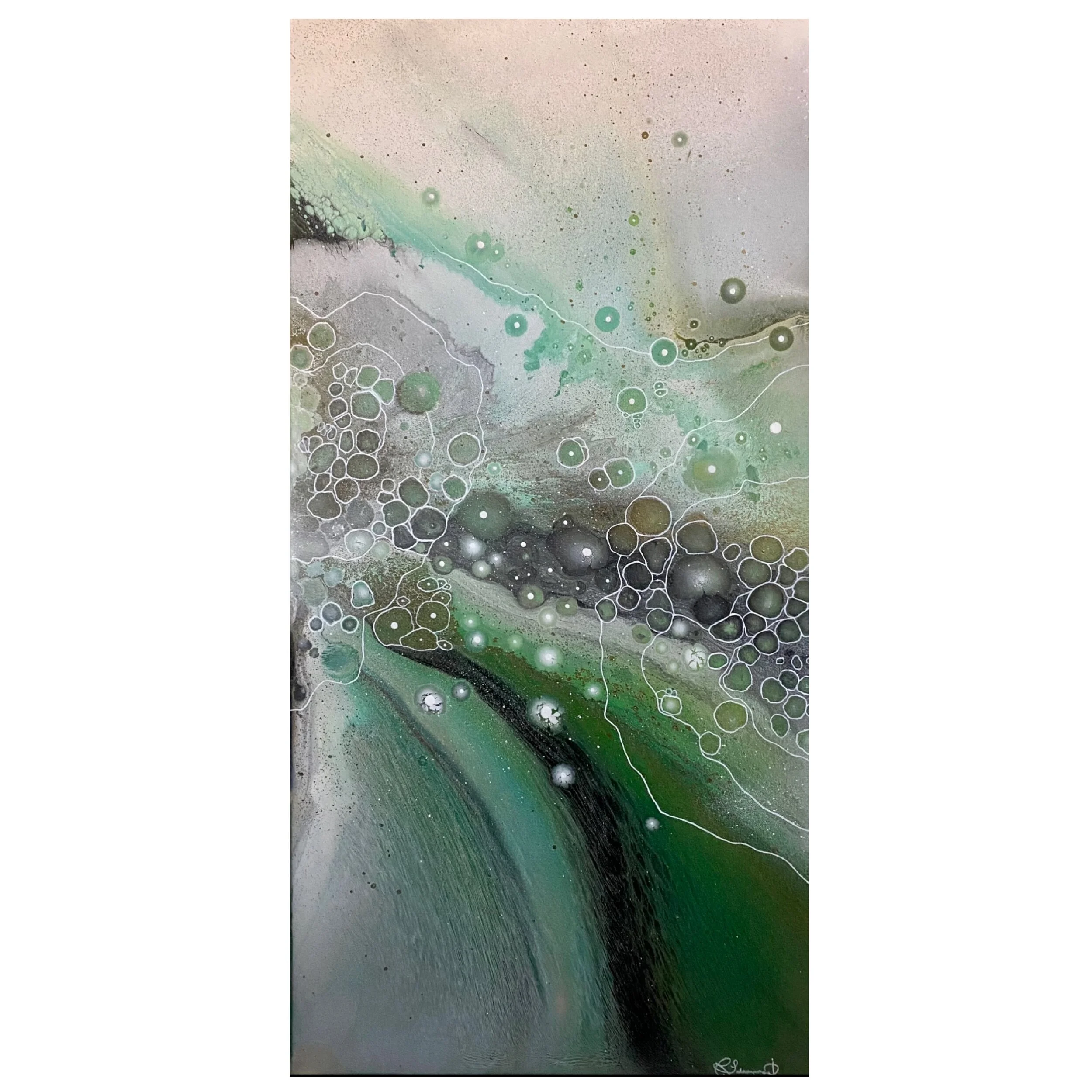 “For as long as I can remember, I always thought art meant structure, art meant precision. Finding my way to fluid painting I realized that art means flow, it means expanding your mind and losing control in the work. I’ve discovered that the more I let go of the unwritten rules, I enjoy my process and see my emotions in what I’m creating. The most common response to my work is feeling a good energy, happiness coming from within. My goal is to provide art that changes energy, to feel what I felt when I created it.”
