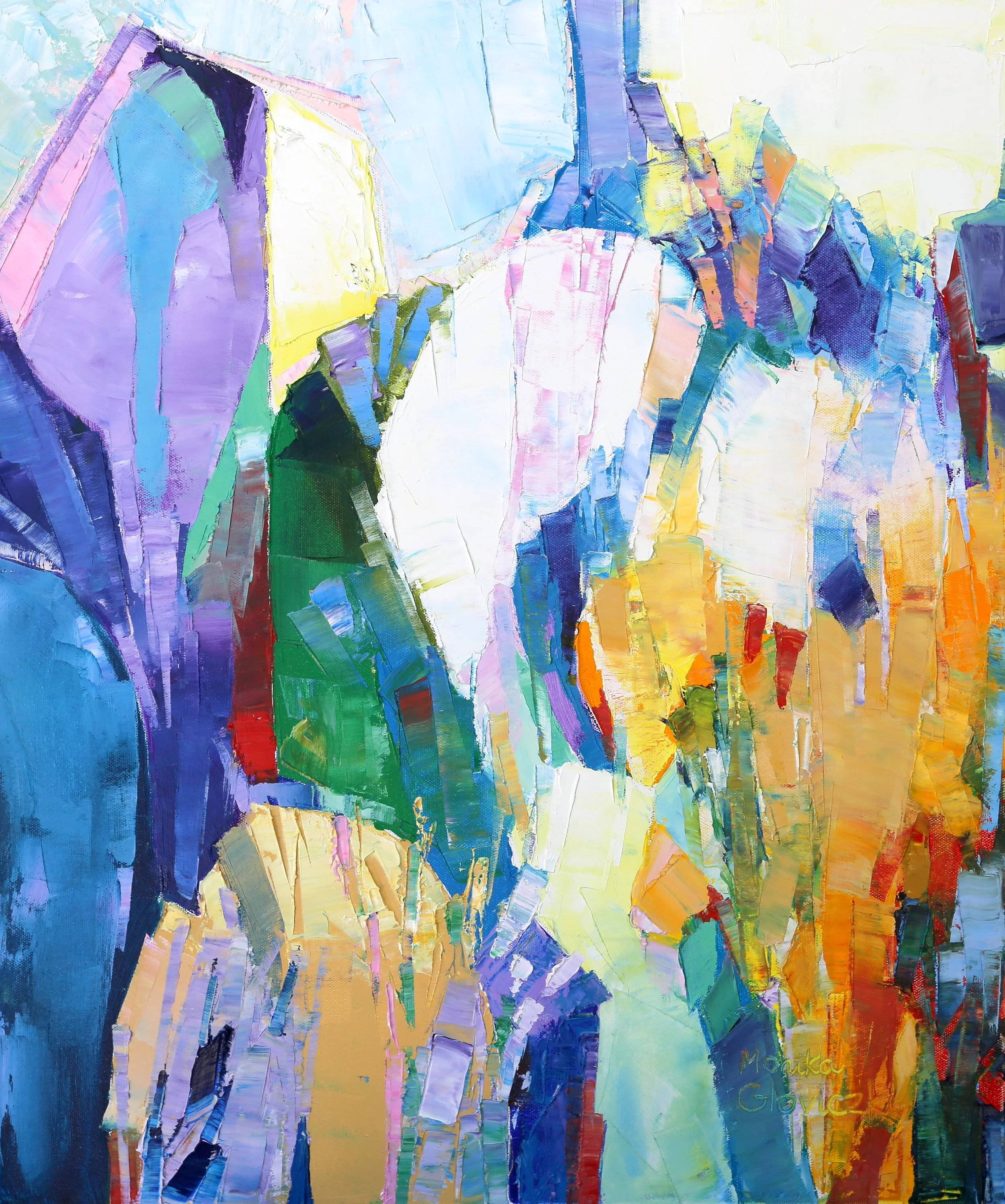 Gloviczki’s artistic education began at an early age with her father, Stanislaw Kazmierczyk, a Polish artist painter and illustrator, who taught her basics of drawings, gouache, and oil painting. She also followed classes of drawings and paintings in Warsaw and later in Paris, at the Ateliers du Carrousel du Louvre. In the US she attended a two-year colourists’ school class. Since 2013, Monika Gloviczki has been a recognized painter, exhibiting regularly. She has had 33 group exhibitions, most in the US but also in France, Italy, and Azerbaijan. Among the shows, the most important to be mentioned are the annual exhibitions at “Agora Gallery” in New York, NY, from 2016 to present; three exhibitions at M.A.D.S. Art Gallery in Milano, Italy in 2021; the “Art 3F” Art fair in Paris from 2018 to 2020 and the “19th Salon International d’Art Contemporain” in Paris, in 2016. Her works belong to private and public collections in the US and in France.